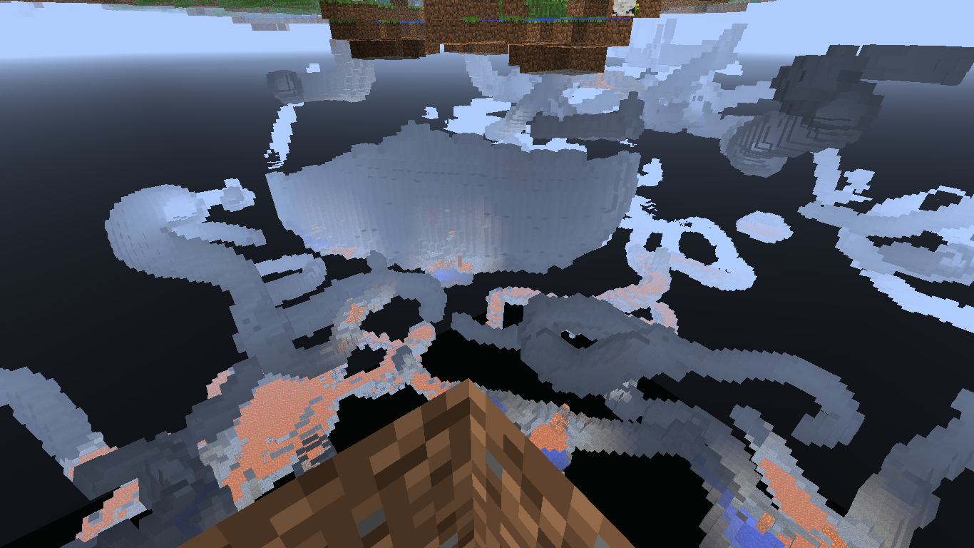 I got stuck in the block without taking damage (aside from the damage from the Ender Pearl) and I was able to see some cave-systems