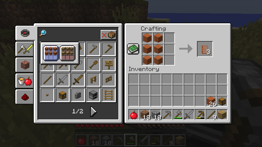 When you hold click the door icon in the crafting book, it shows the trapdoor crafting recipe. I know this isn't a very bad issue, but it is still a bug.