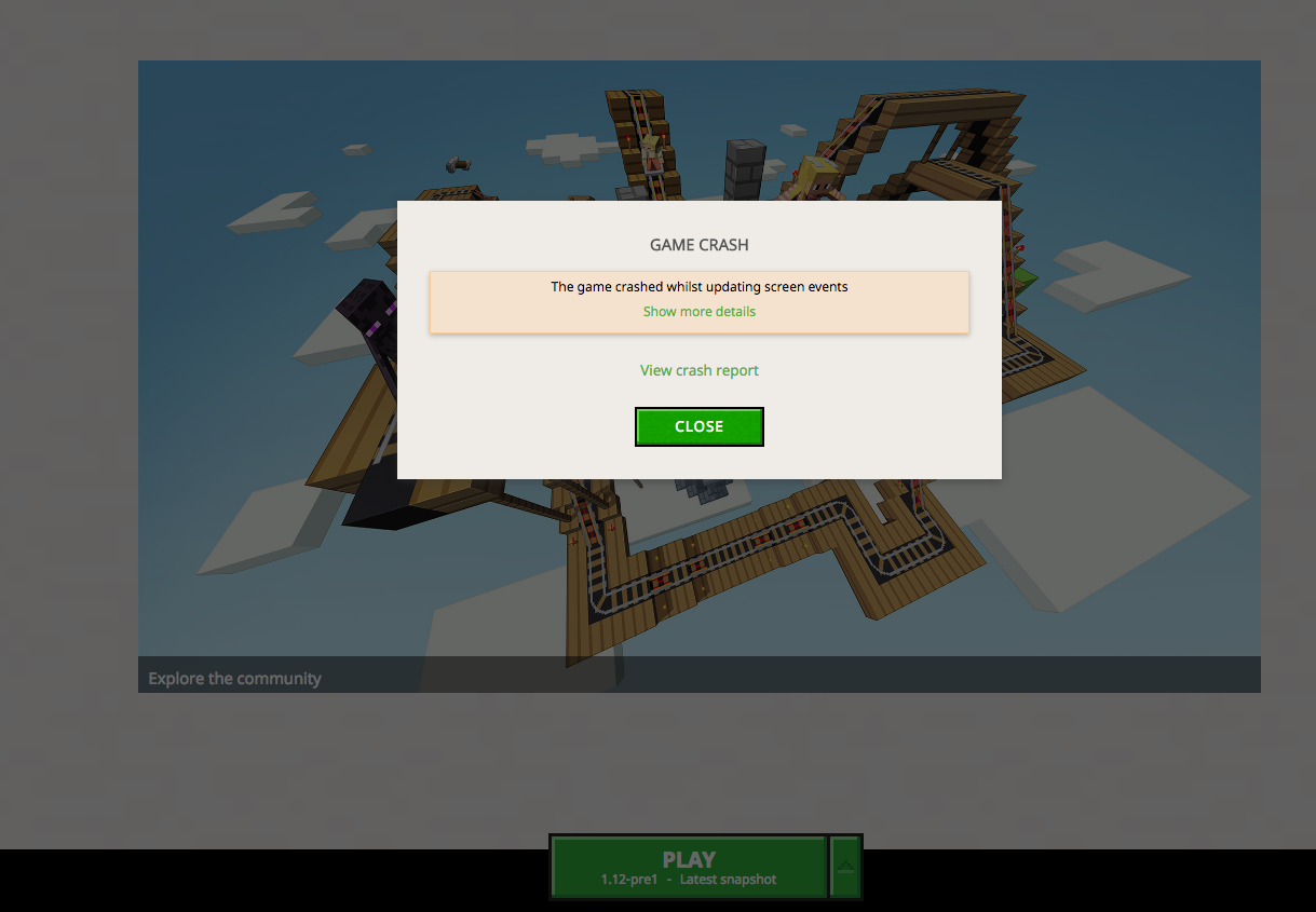 Then the game crashed, and it brought me back to the Minecraft Launcher Menu.
