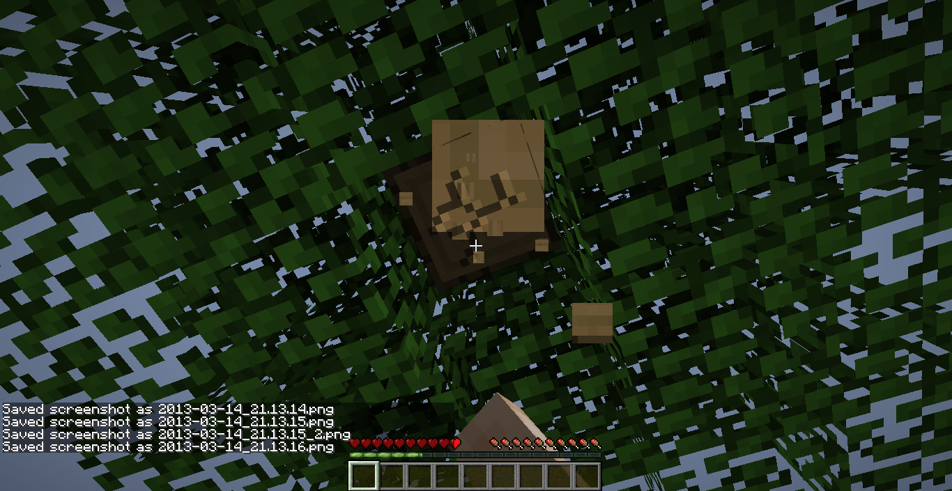 I was excited to see that when I launched Minecraft today, I saw 1.5 had been released. I was thrilled, so I created a survival world and checked out the improved engine and some other features. After a few minutes, I noticed something as I was chopping down trees: the block outline and the breaking overlay was showing over the particles!