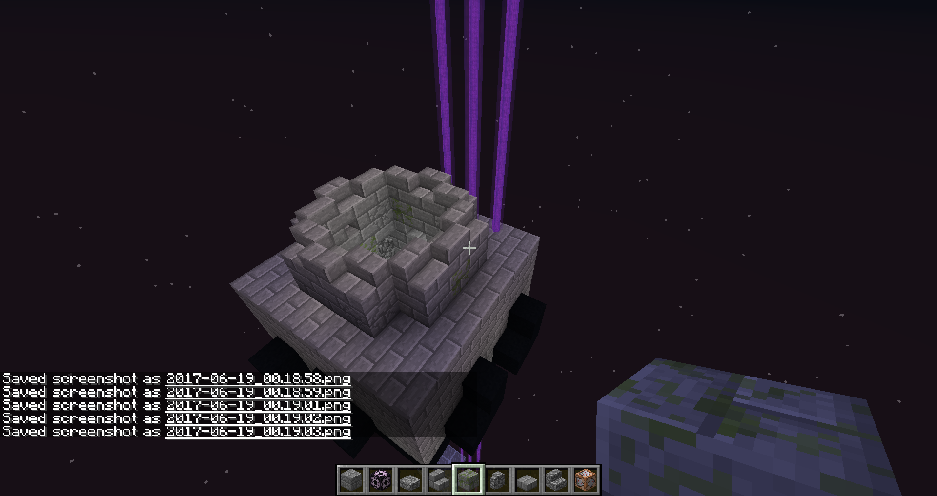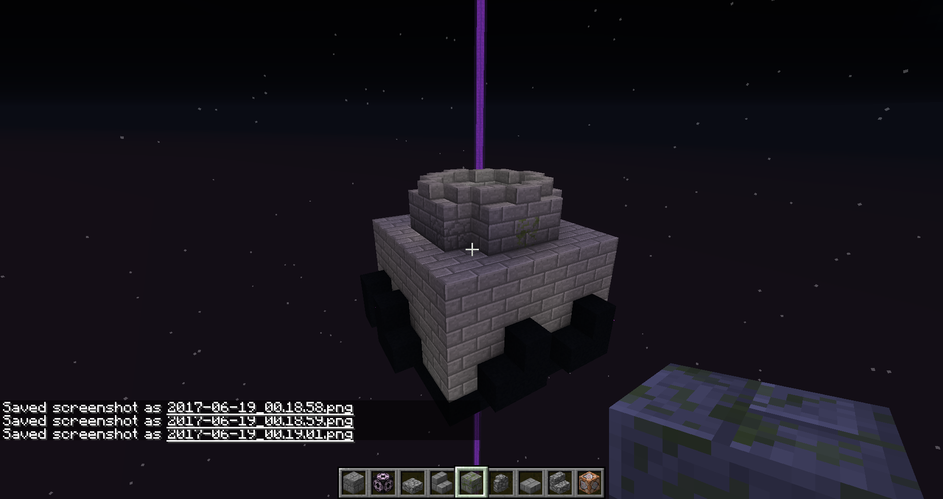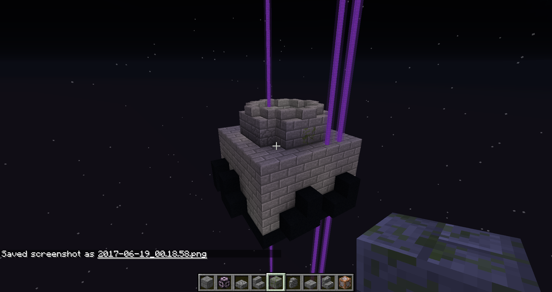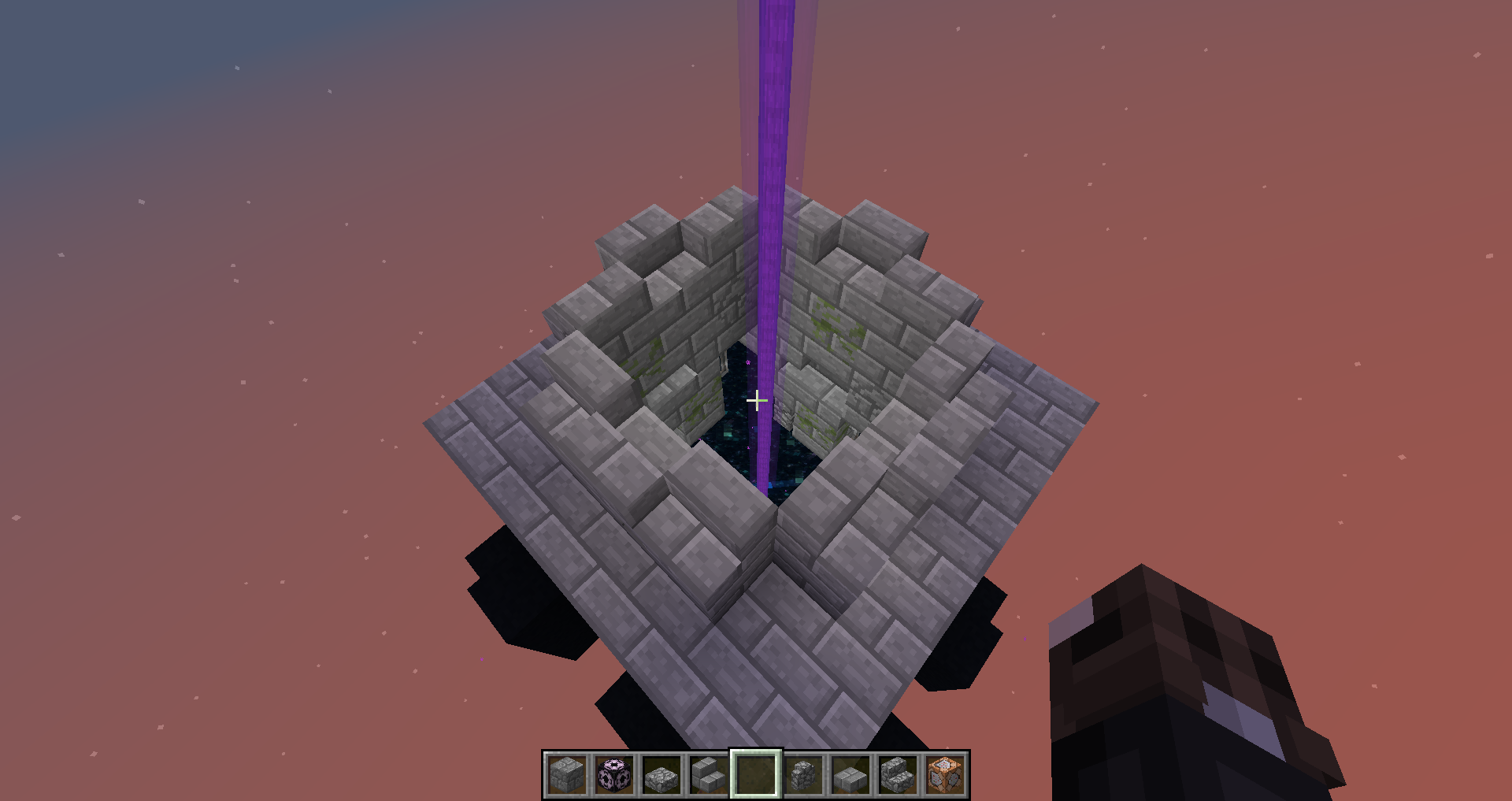The end gateway seems to think a mob is in it, while in the overworld, but none is there. It'q really frusttrating to build with, but it doesn't cause anything else than to spawn that purple beam.