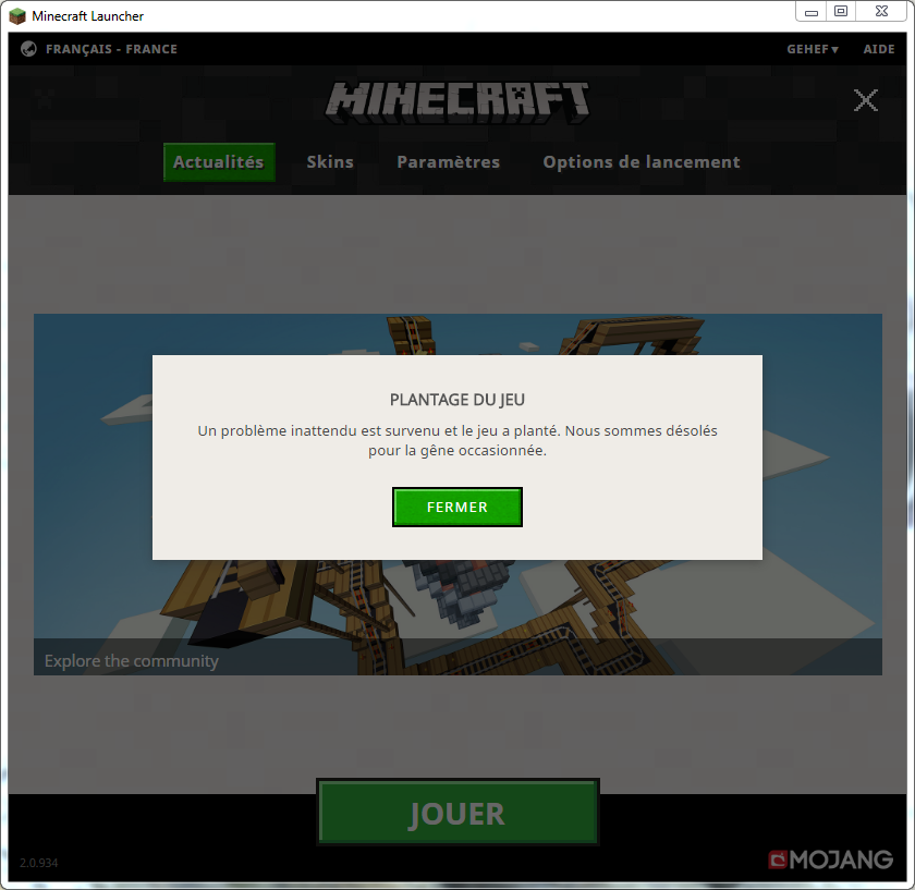 Chemin d’accès de l’application défaillante : C:\Program Files (x86)\Minecraft\runtime\jre-x64\1.8.0_25\bin\javaw.exeI tried to search in the bug tracker about the error "0xc0000005", and found that there were recent problems with NVidia drivers, that's why I upgraded them... but with no success.