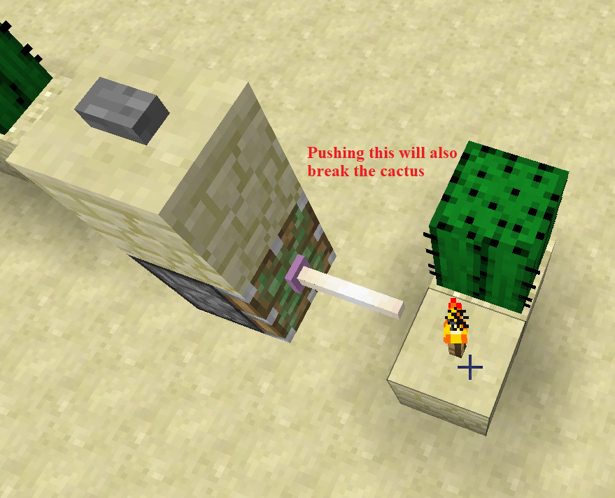 I assumed this was just that Block 36 broke cactus, but strangely pushing two end rods next to the cactus simultaneously will break it as well. I'm not sure it this is a separate bug, or if I've misdiagnosed this one.