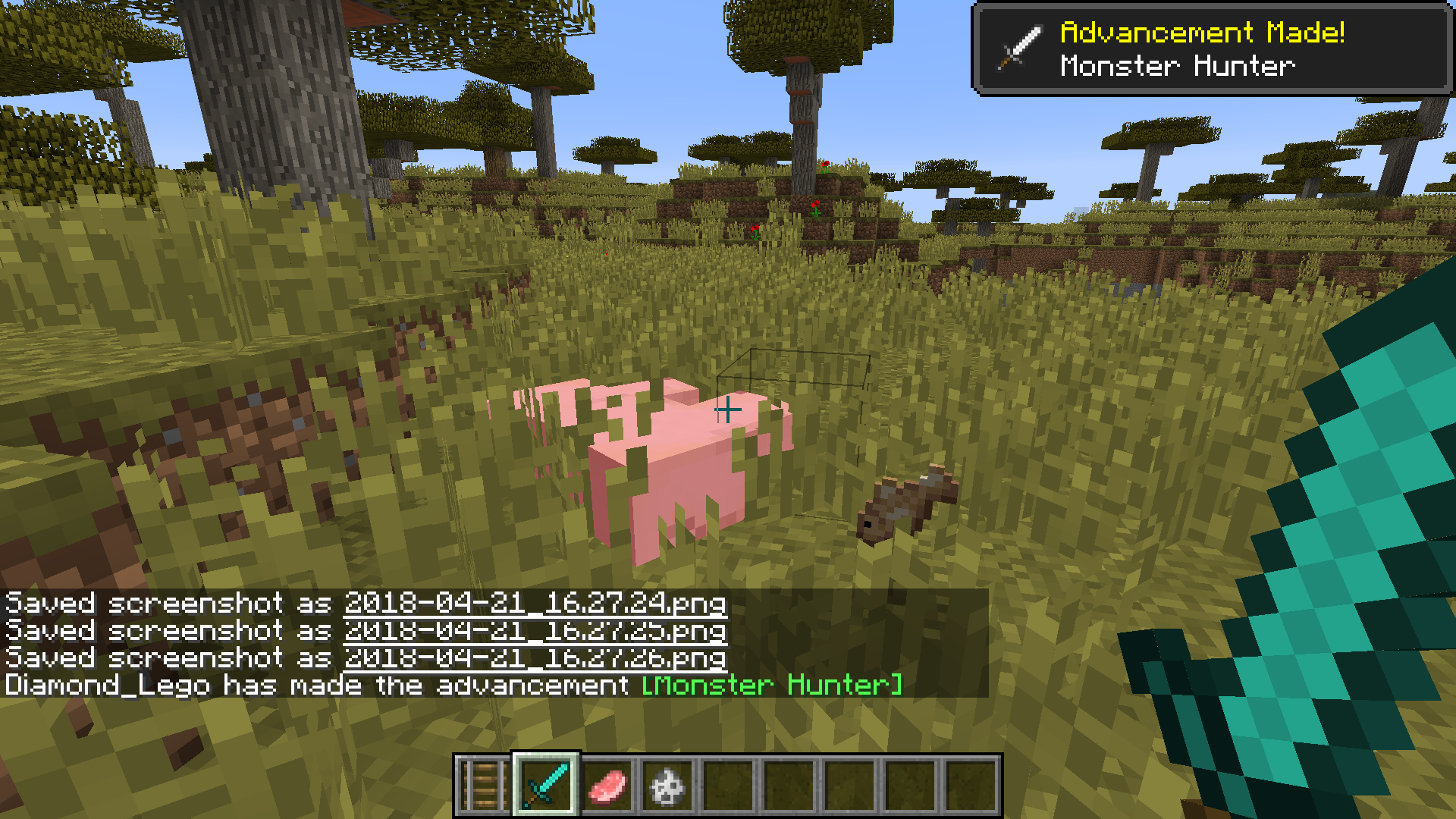 Additionally, from a gameplay perspective it is just counter-intuitive to include such mob in the advancement, and may often require players to look up the required mobs instead of figuring them out on their own. None of the other required mobs are real-life creatures; all of them are fictional to some extent – some, such as zombies or skeletons, can be seen in other fictional universes; some are Minecraft-specific, such as blazes or ghasts; but none of them are real creatures. As such, having a real-world animal be part of the advancement doesn't fit its pattern (at least in it's current arrangement, which may change in the future).