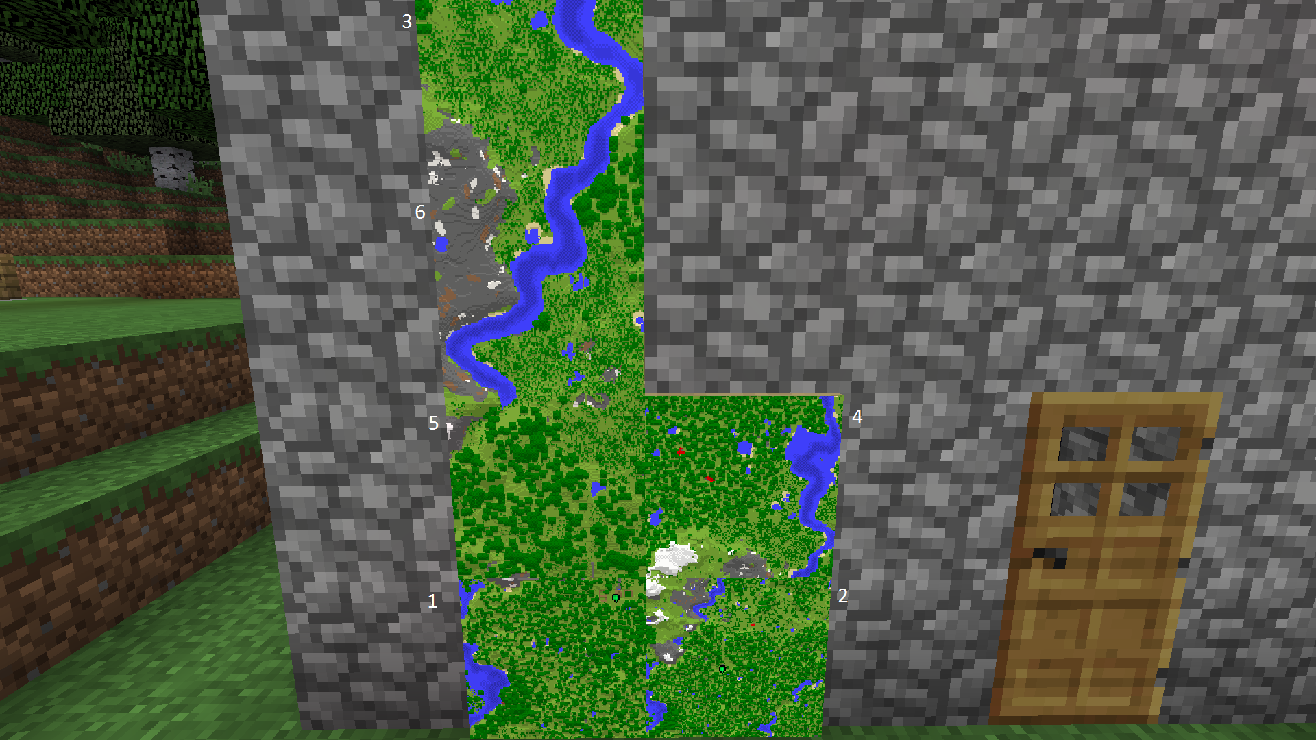 In single player Minecraft, I've tried to map my surroundings.