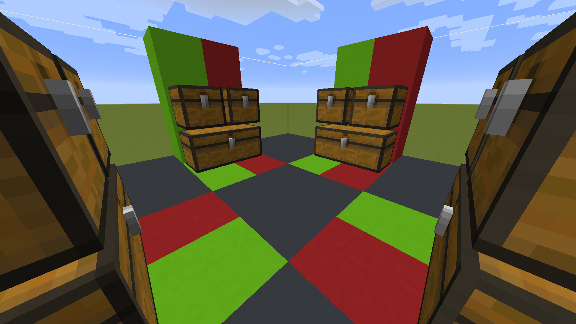 Put down 4 double-chests, each facing in a different direction (pictured in 1st attached screenshot).