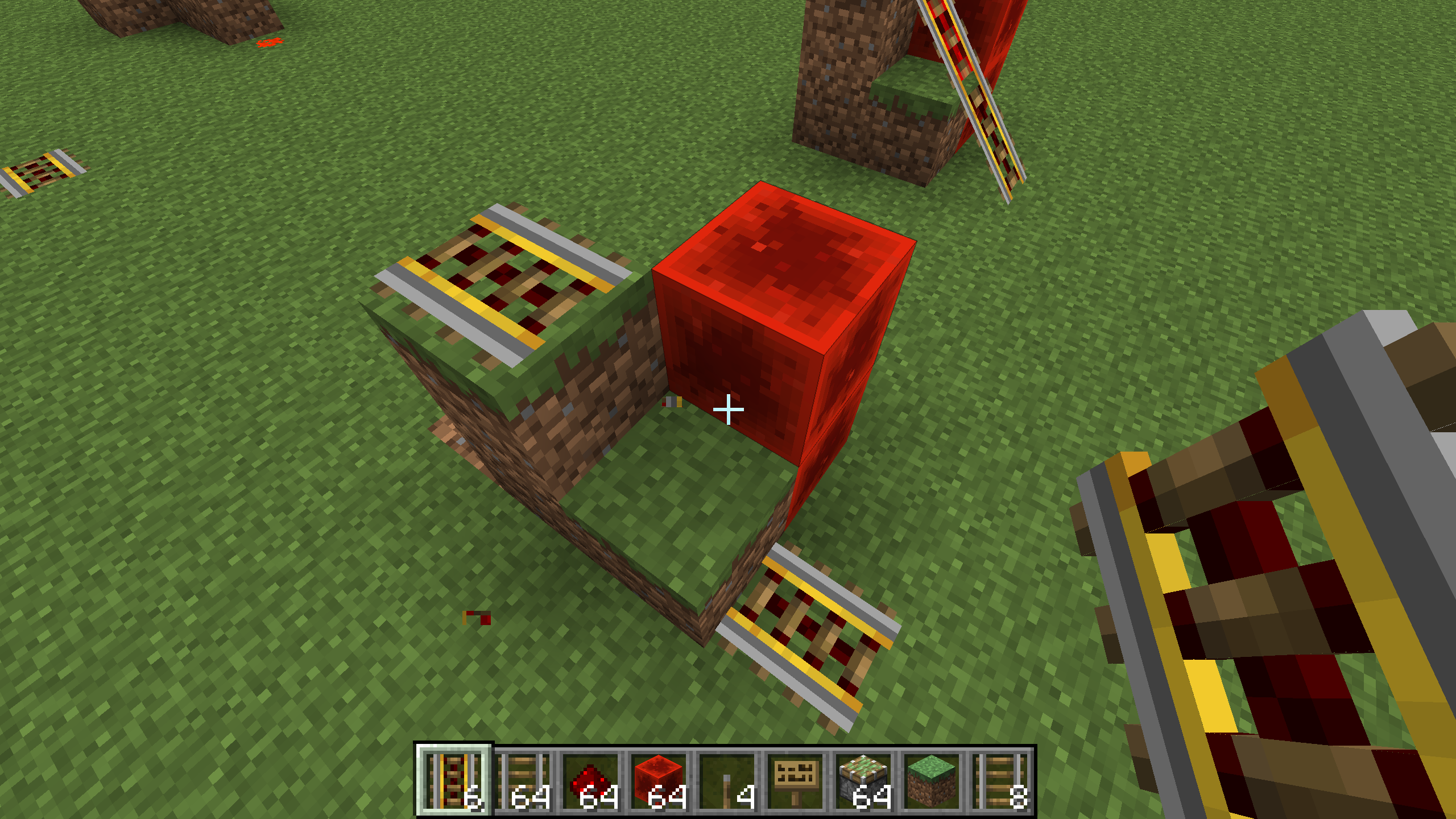 To reproduce, build the setup shown in the attached screenshot and place a powered rail against the redstone block.