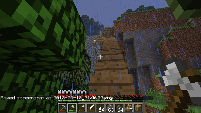 I had constructed a shoddy wooden staircase to get up a cliff, which I eventually replaced with a much better cobblestone staircase. However, when I save and exit the world, then re-enter, the original shoddy staircase is there again. I've removed the wooden pieces, and they're in my inventory. When they reload and I break them again, I don't get them as items again. I've left the chunk and returned, changed the render distance, and nothing works. Constructions that I've made in other areas after the staircase function just fine.
