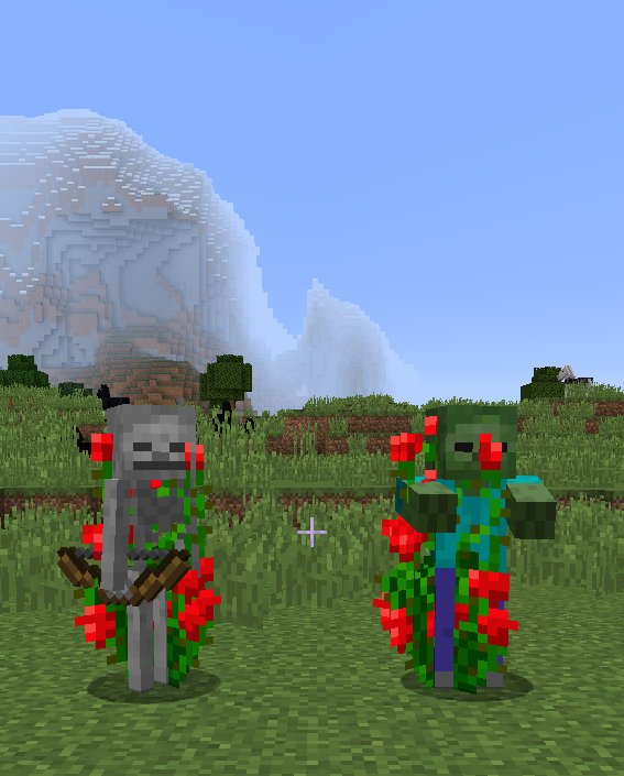 Mobs can hide in double plants to prevent being burned. Skeletons automatically finds its path to double plants though zombies seems like they want to find a better spot (Underneath a block).