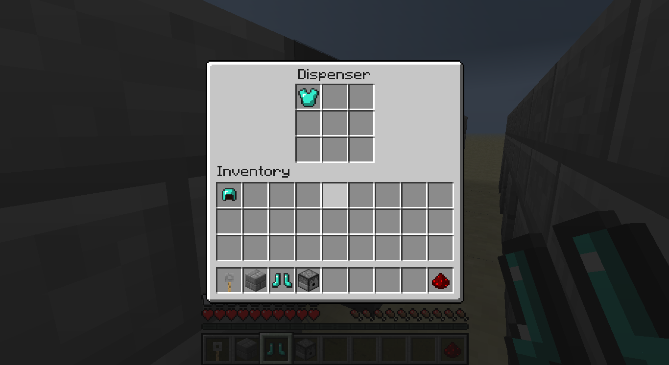 I was expecting to wear a full suit of diamond armor when i walked though, the armor would be equipped by the dispenser.