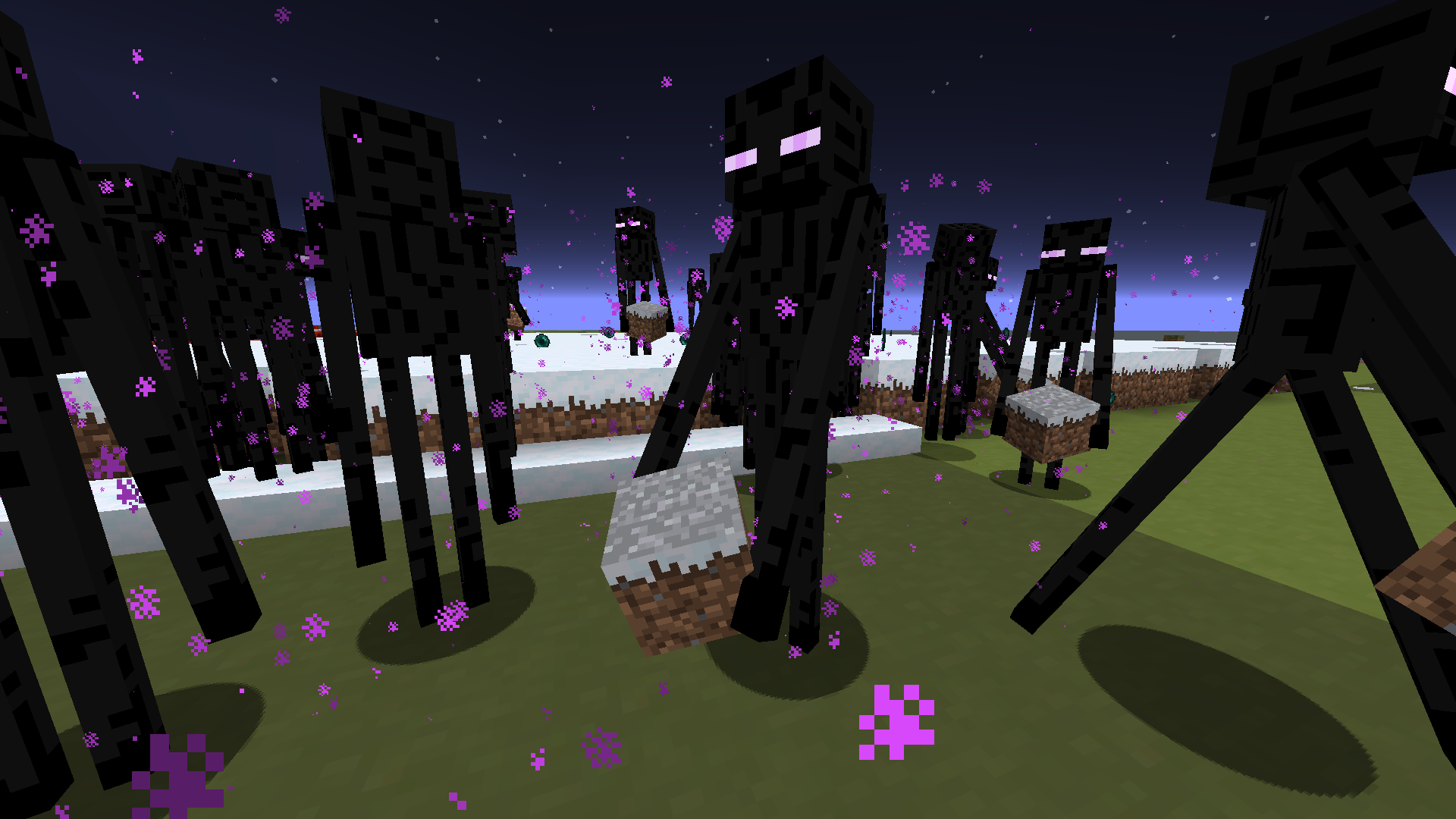 Now that endermen copy block states exactly when picking up and placing blocks, they can grab and place snowy grass (and mycelium, podzol...). They appear with the strange top texture (MC-109531) and when placed, exist as an invalid block state (snowy, but with no snow on top).
