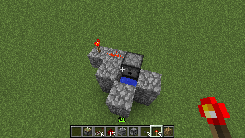 for the dispensers to behave in an identical manner to the previous case (4), i.e. for a water source block to be placed by the top dispenser and for the bottom dispenser to do nothing. Repeating step 6 should then once again trigger the top dispenser only and remove the water source block at the top and leave the tube completely empty.