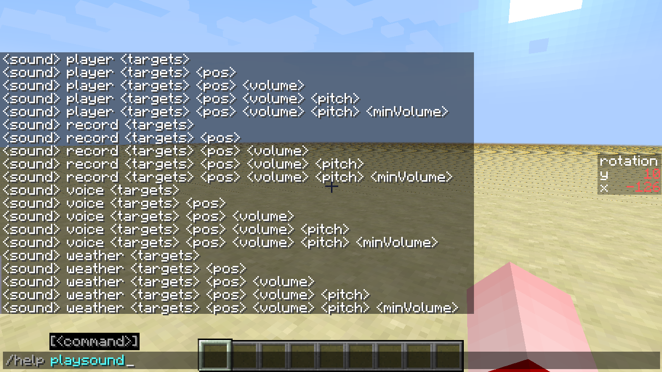 Typing /help alone returns every possible argument combination for every existing command, which not only throws way too much information at the player at once, but doesn't even fit in the chat history in its whole (the farthest you can scroll back up is until around /stopsound).