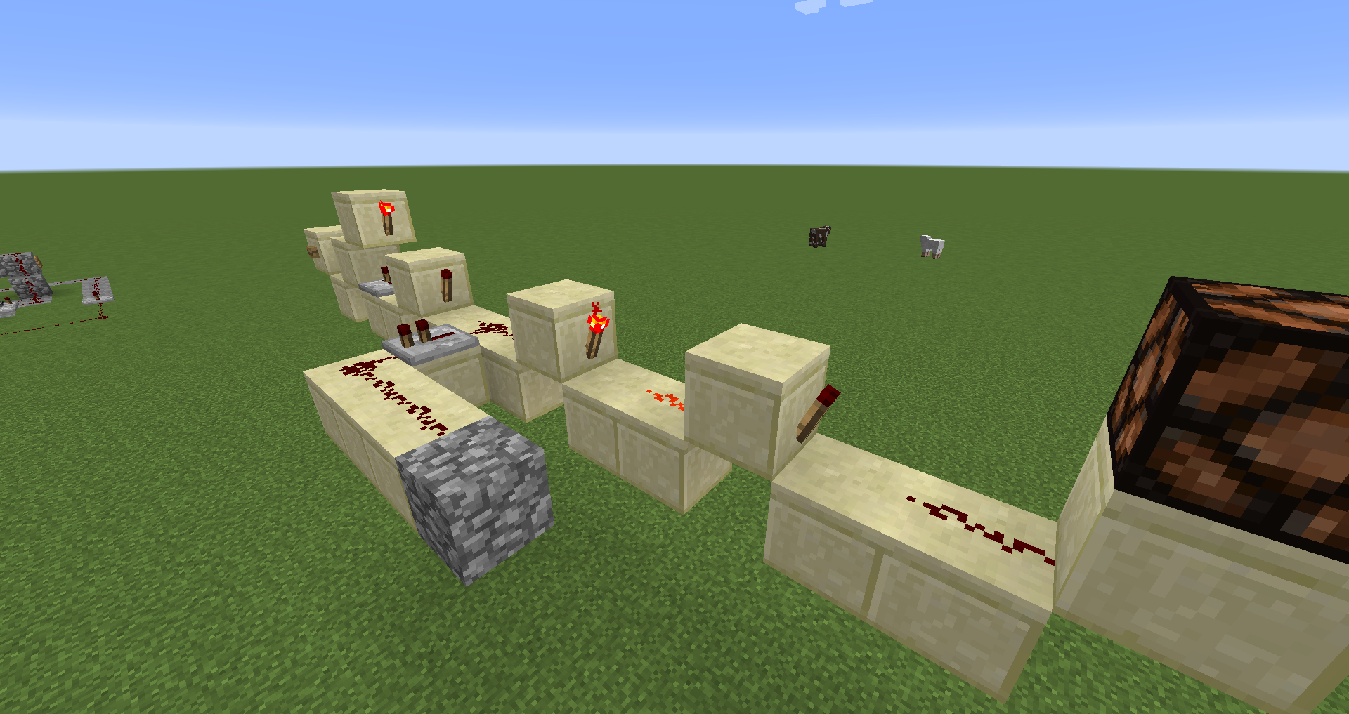 1. Build the construction exactly like in the pictures without the restone on top of the cobblestone block.