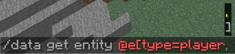 /data get entity @e[type=player/data get entity @e[type=player→ ❌ Only the syntax help is shown despite the selector being invalid because it can target more than one entity