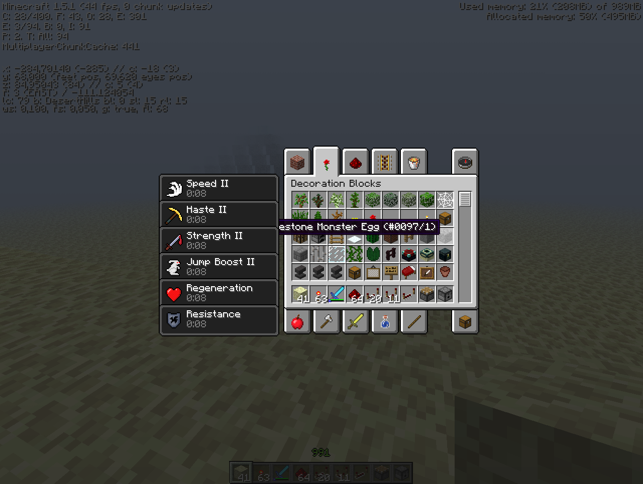 3. Open creative inventory and hover over the "Cobblestone Monster Egg".
