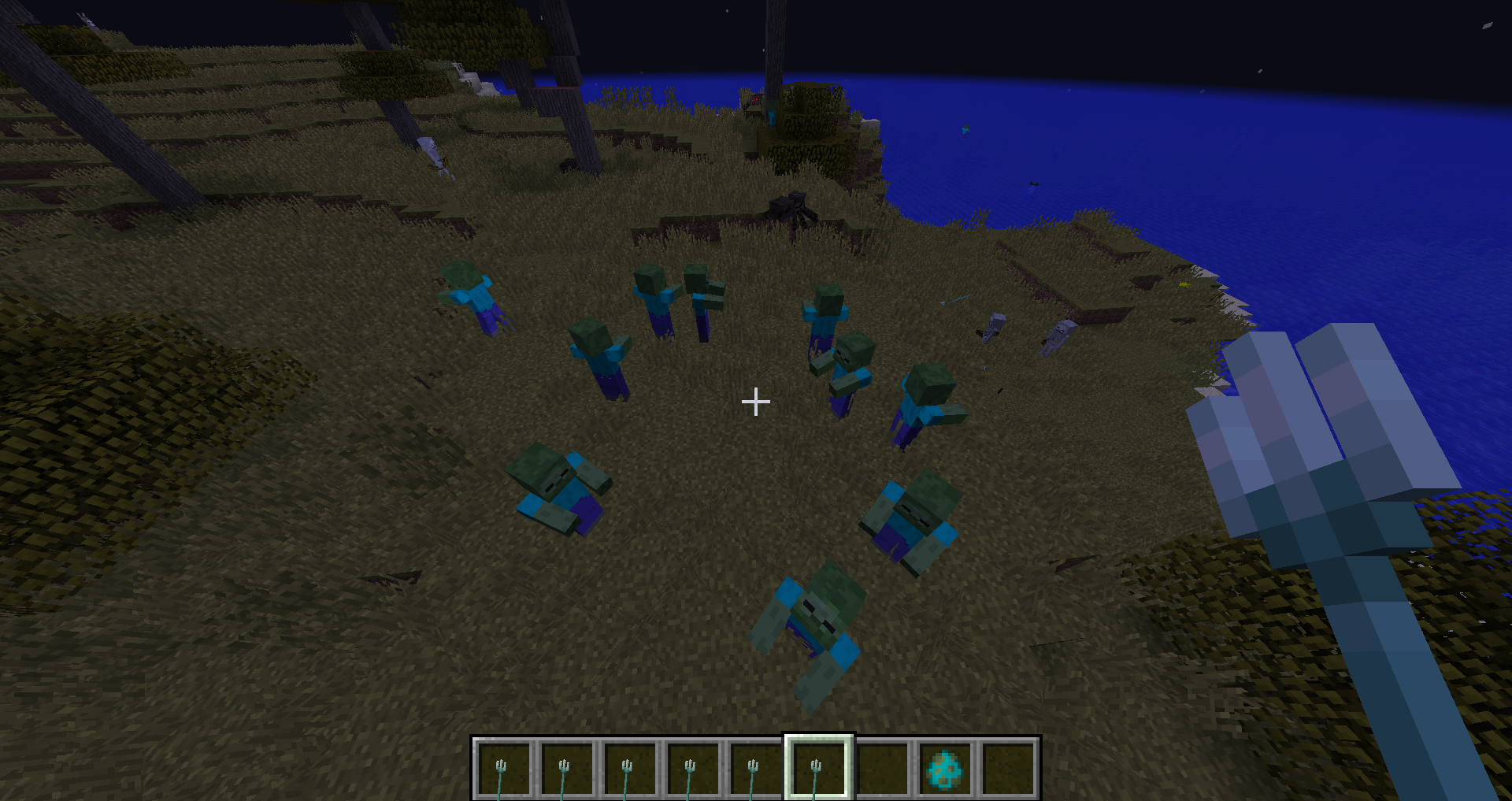 1. Throw the trident on the ground or directly on the mob (the effect is similar in mid-air, but it lasts much shorter)