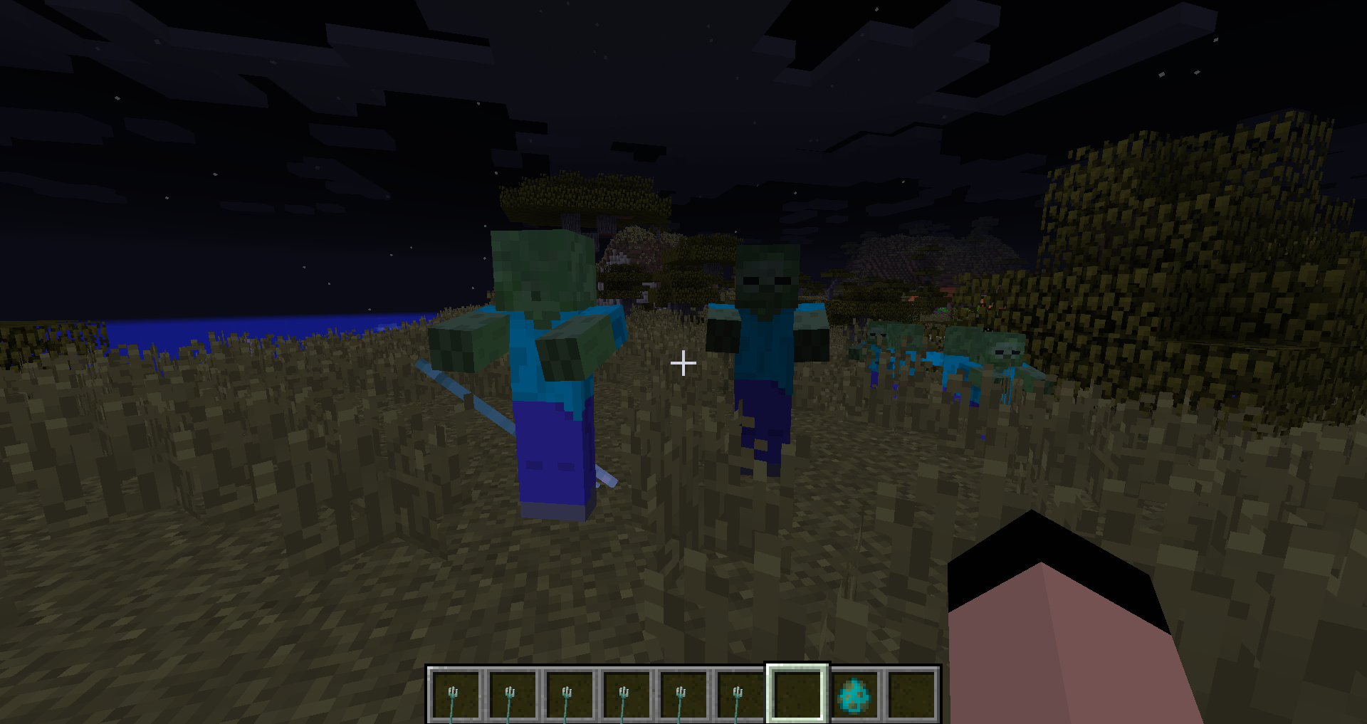 Trident, when thrown, seems to affect how nearby entities look in the same light level. The effect can disappear when player's camera is placed in a different angle, or when player is close to the trident. Similar thing happens even with enchanted trident.