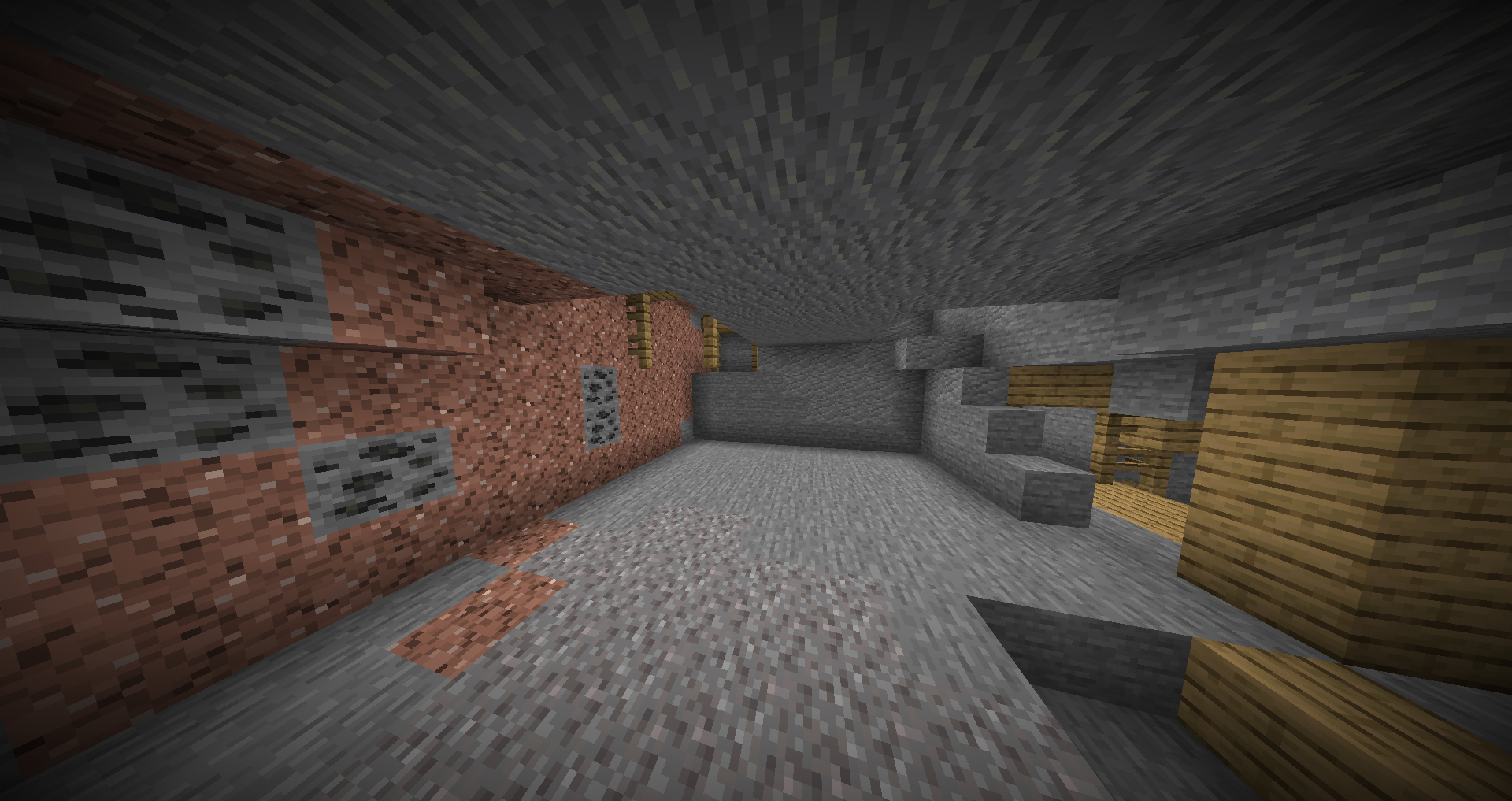 When a mineshaft generates over one another it can fail to generate the planks for the floor above, occasionally causing floating rails to generate