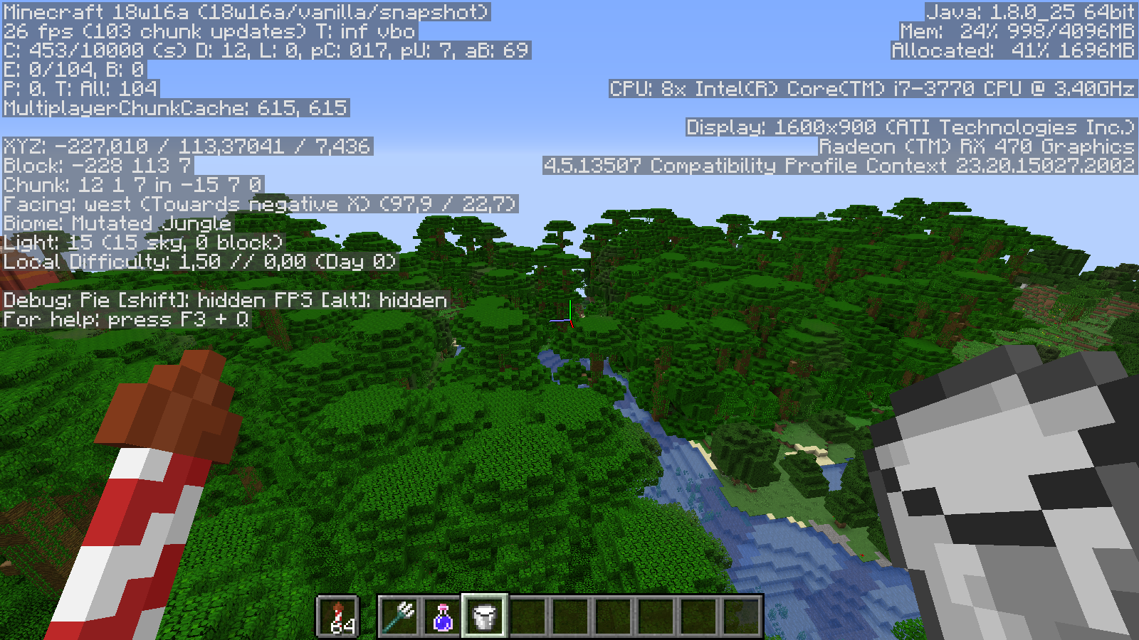 I have fps drops in the jungles of 18w06a when the world generator changed, I also felt that the jungles are with more trees, when I look at another biome the fps is above 100 when I look at the jungle it has a drop to 40, 30, 20.