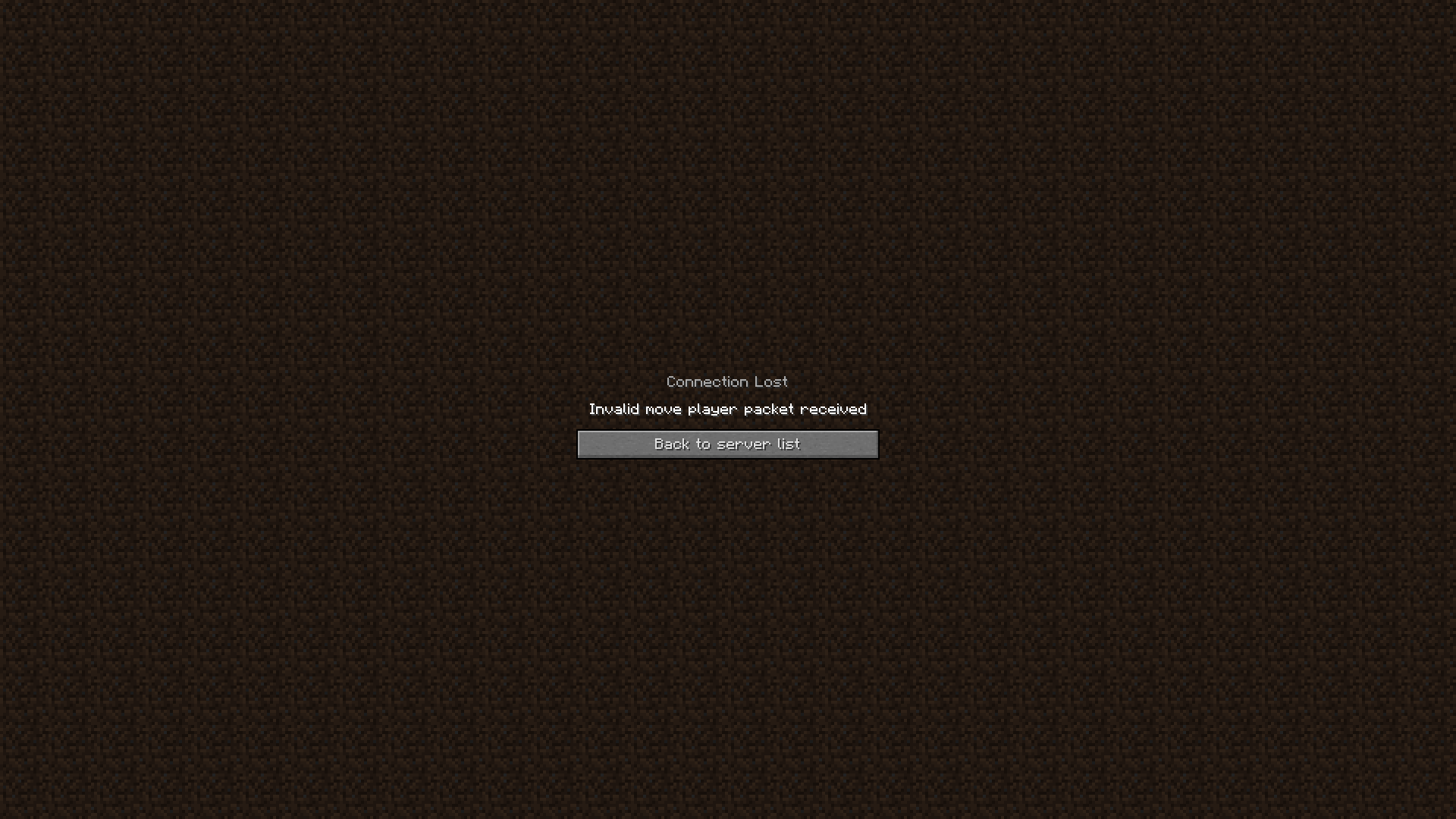 If you're using an Elytra and facing straight up (###,# / -90,0), the world crashes and messages the player, "Connection Lost, Invalid move player packet recieved" and tells to go back to the server list.