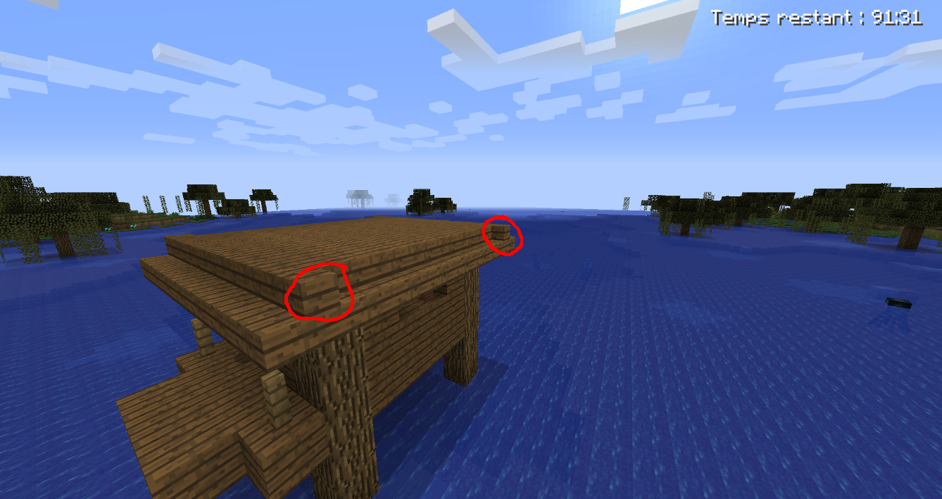 the stairs that form the roof of the swamp huts are misplaced .