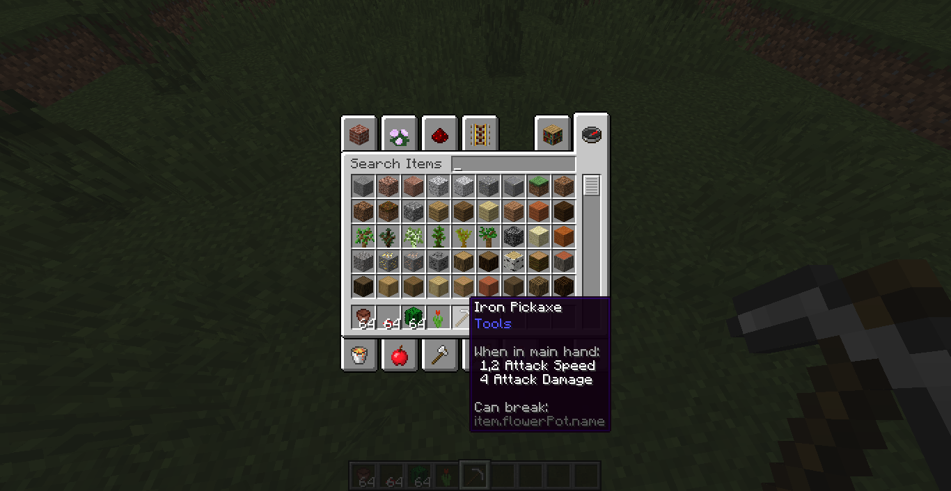 /give @p minecraft:diamond_pickaxe{CanDestroy:["minecraft:potted_dandelion"]}/give @p minecraft:diamond_pickaxe{CanDestroy:["minecraft:potted_dandelion"]}Look at the item in iventory