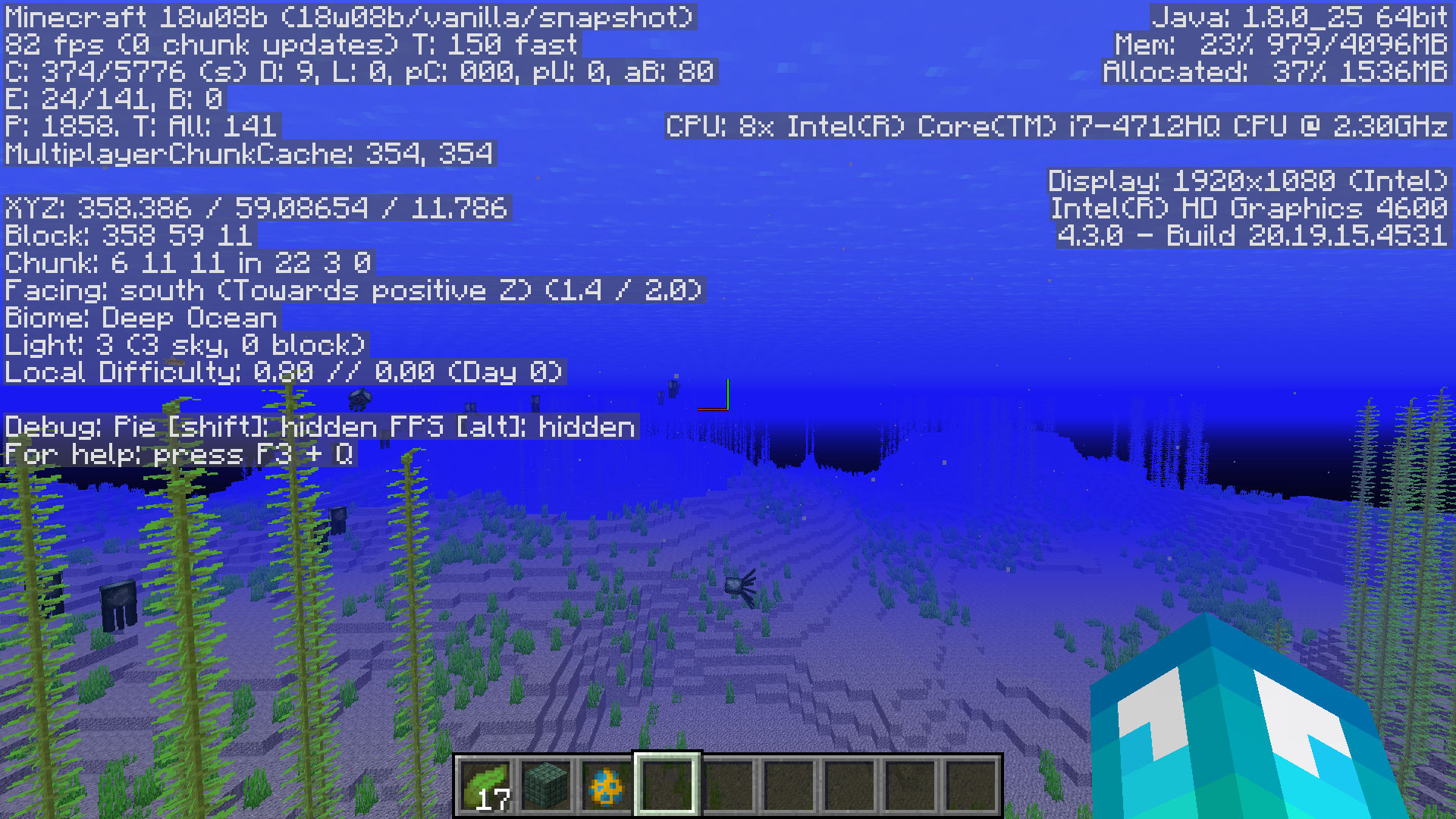 I was swimming around, and then realized something strange. When my head is about a block below sea level, the lighting in the distance is strange.