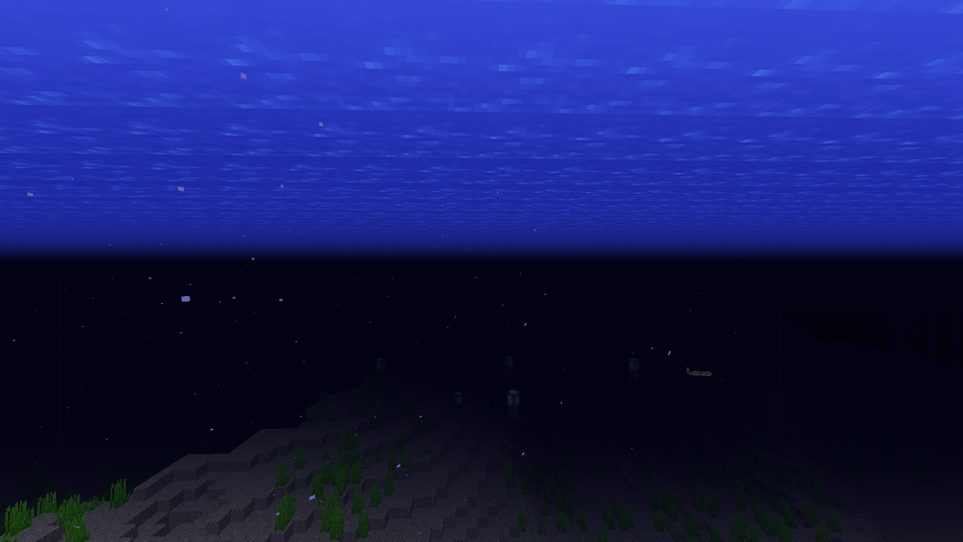 When spectating a squid, fish or dolphin underwater, it is pretty dark. It's actually darker than being in the ocean without night vision.