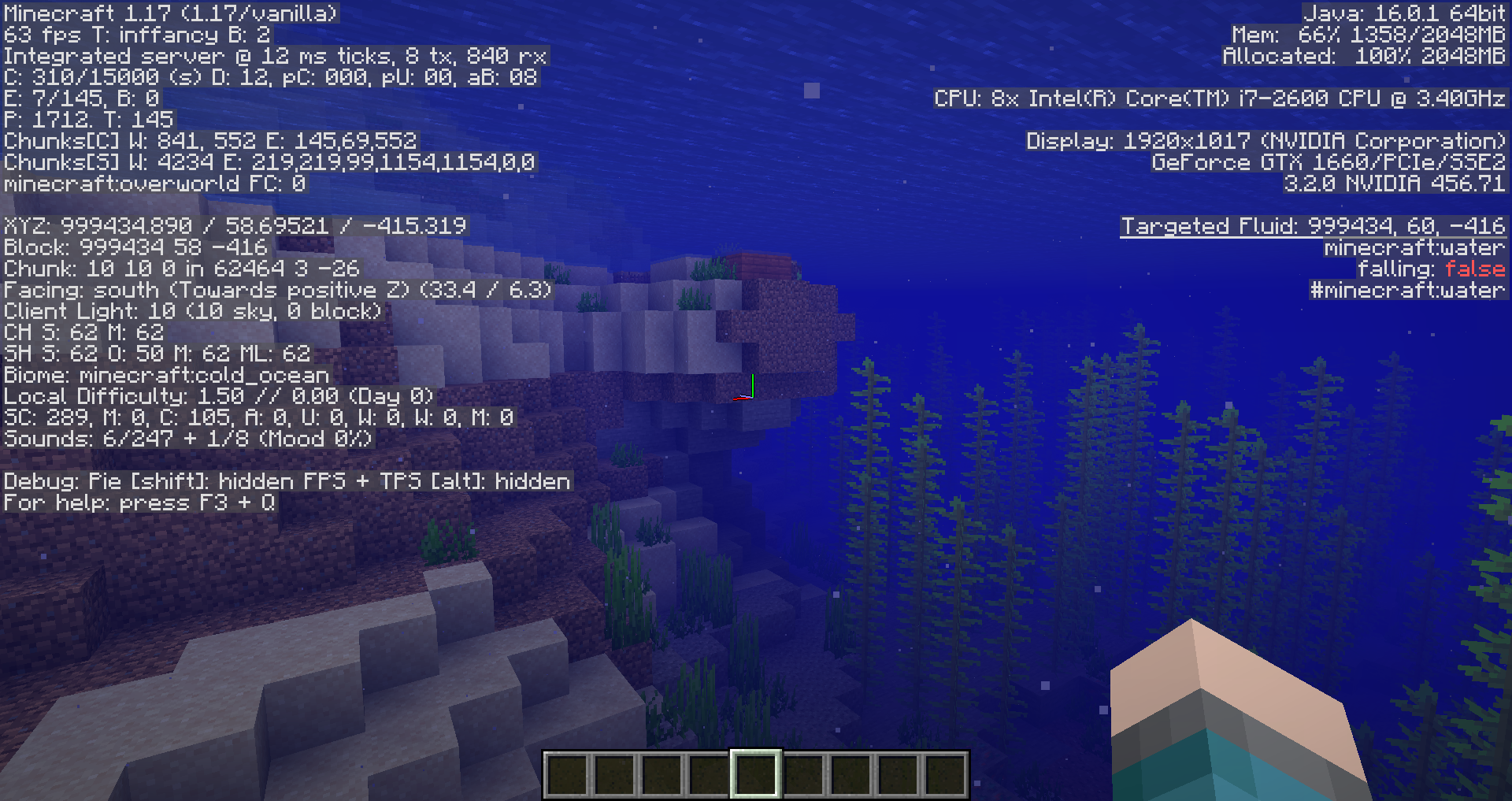 Wait until underwater area is visible (theoretically easier with night vision and water breathing)