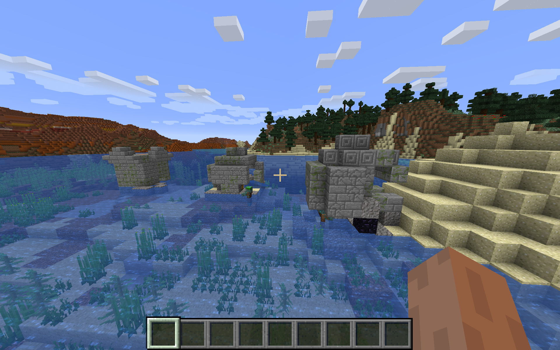 Just encountered similar issue, couple "underwater ruins" generated on dry land, relatively far away from the ocean (on biome plains)