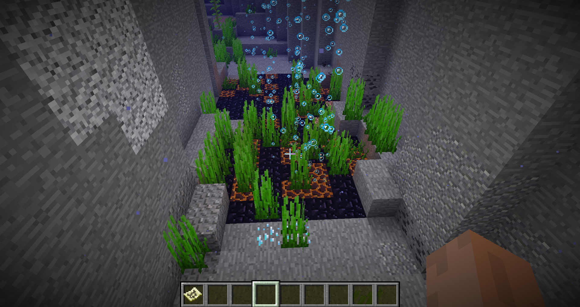 sea grass , kelp or coral plant can be generated on crevices in magma block .