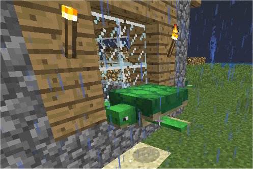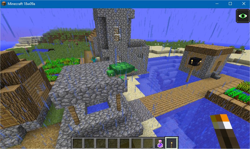 A Turtle spawned on top of a house in a Village that spawned in the Ocean. Not sure if the Village should be there either? But pretty sure the turtle shouldn't be on the house. XD