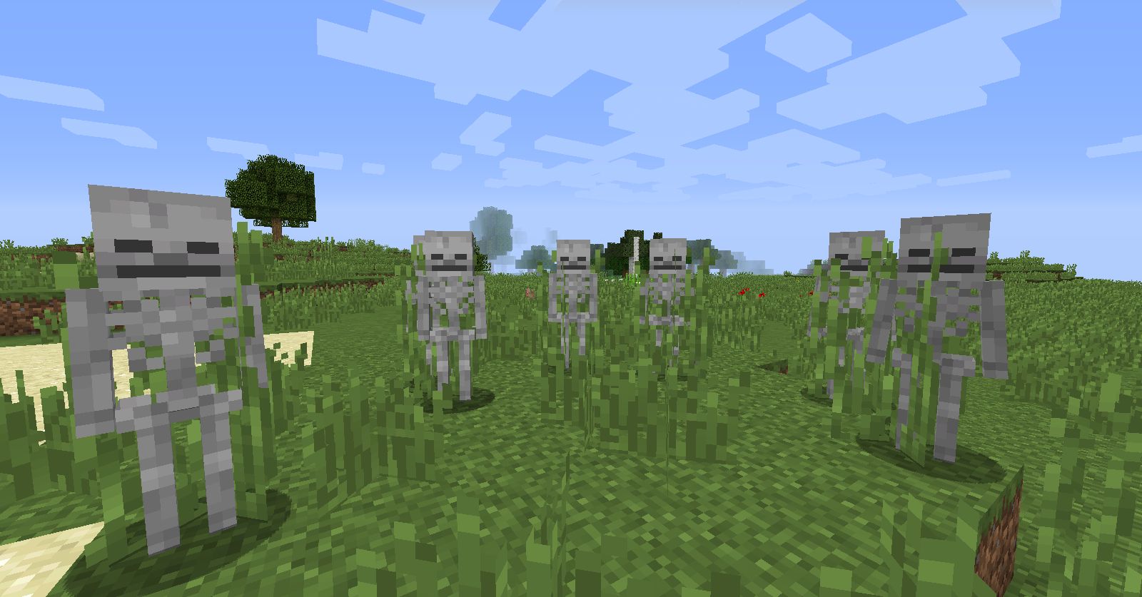 Skeletons will hide in tall grass to escape burning in sunlight.