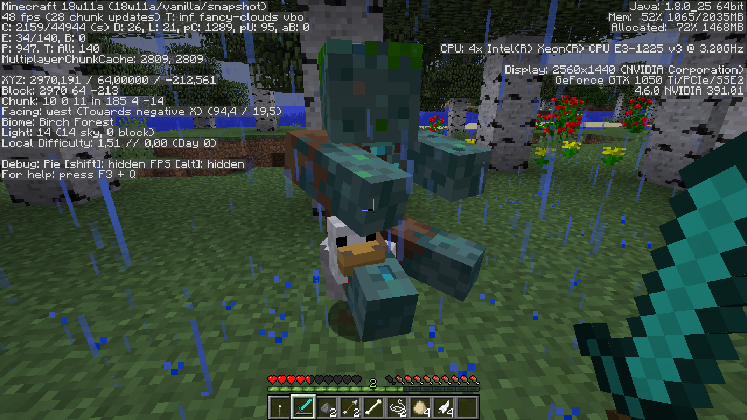 If you want to have some fun, use seeds to make the drowned chicken rider follow you.