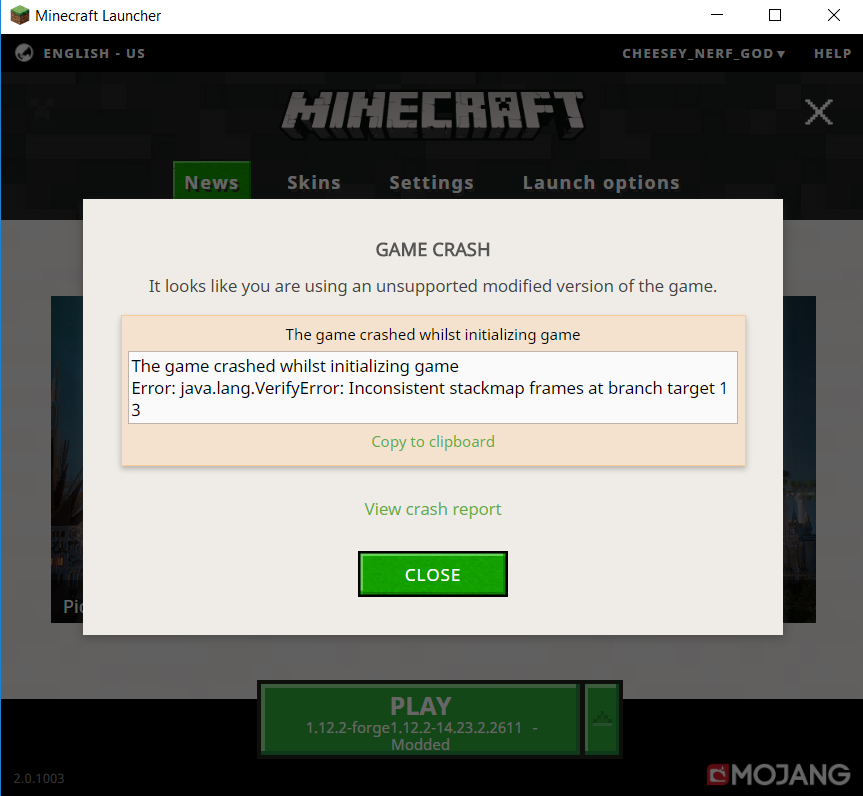 Whenever I want to play with mods in 1.12.2 forge, it takes a little bit to load up the game, then as soon as I see the Mojang screen, It crashes and gives me this error: