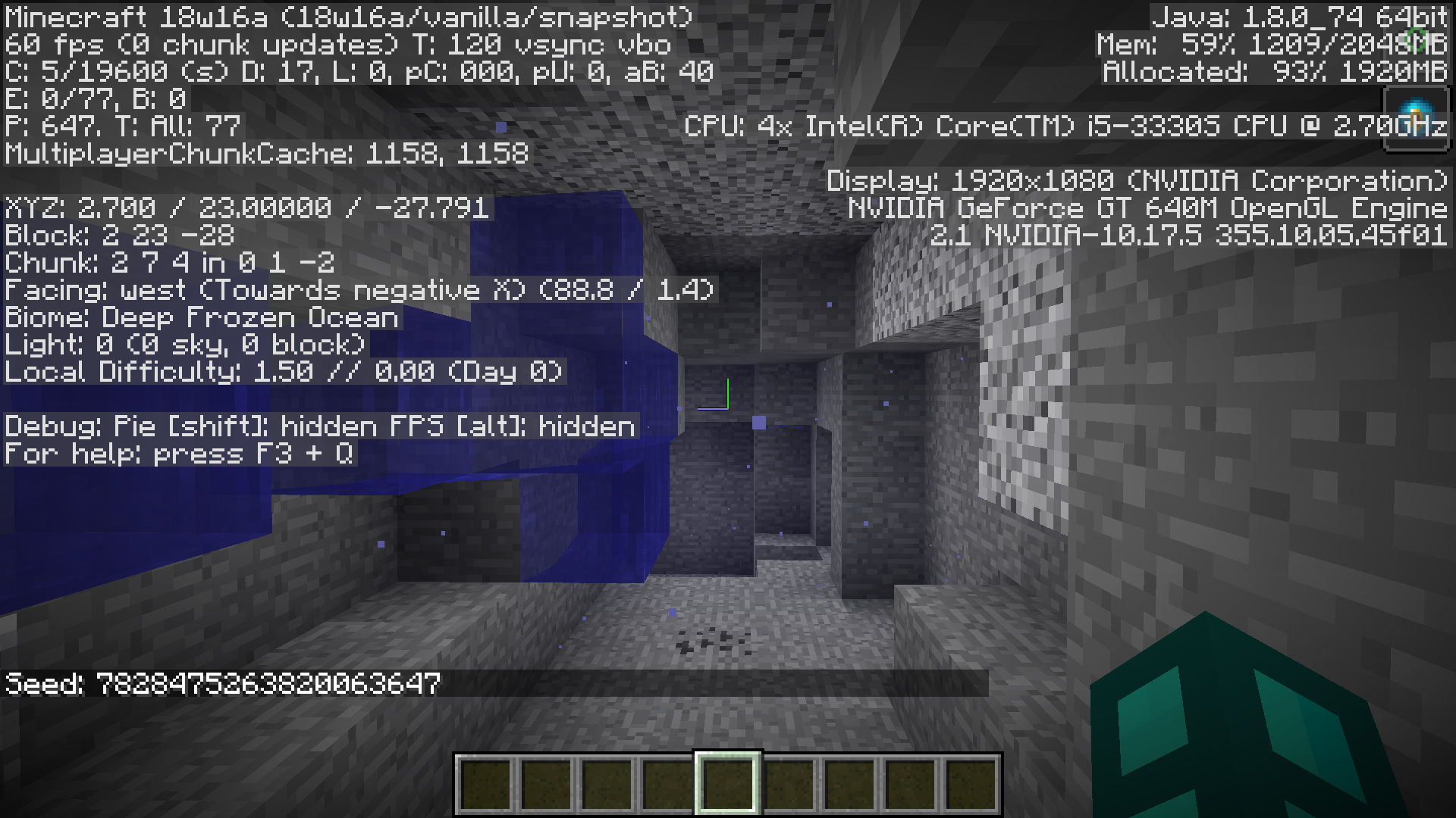 Water sources will fail to generate on the south side of flooded caves and ravines. This causes flowing water to generate in the places without water sources, and it can be annoying to swim around when the flowing water pushes on you when trying to explore the caves.
