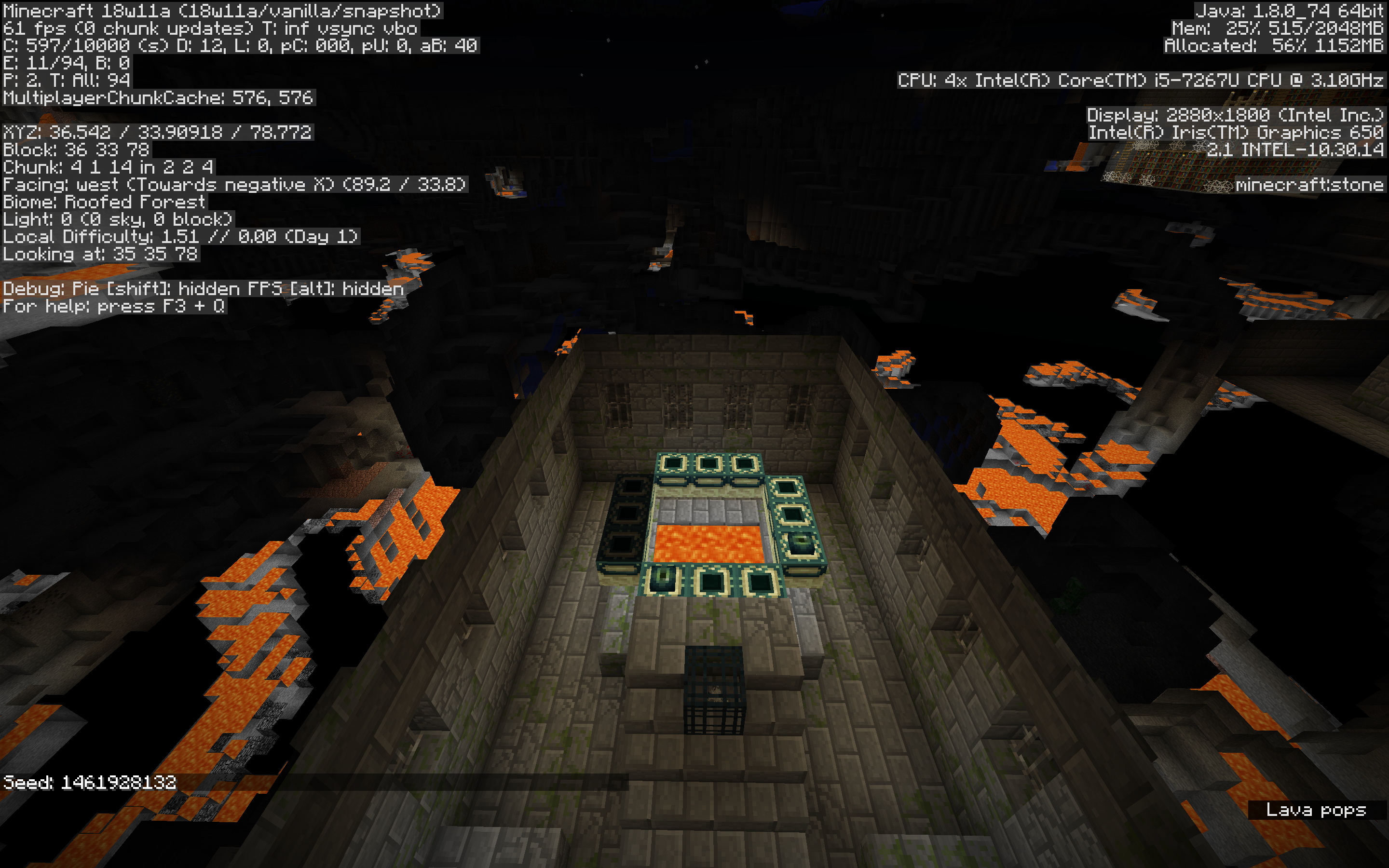 See the attachments. A stronghold is generated unexpectedly on (36, 33, 78) on 18w11a using the seed 1461928132 while it didn't generates on 1.12.2.