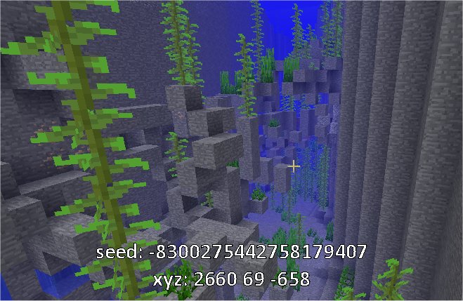 I found underwater ravines with caves partially formed inside them, just hanging in the water. Some seem to be more of a random grouping of blocks, but others are actually cave shaped. (See pics.)