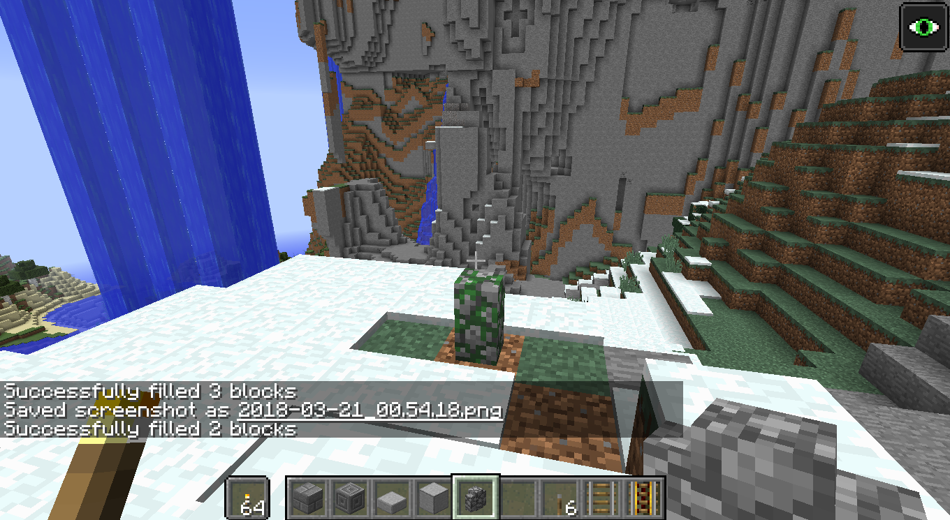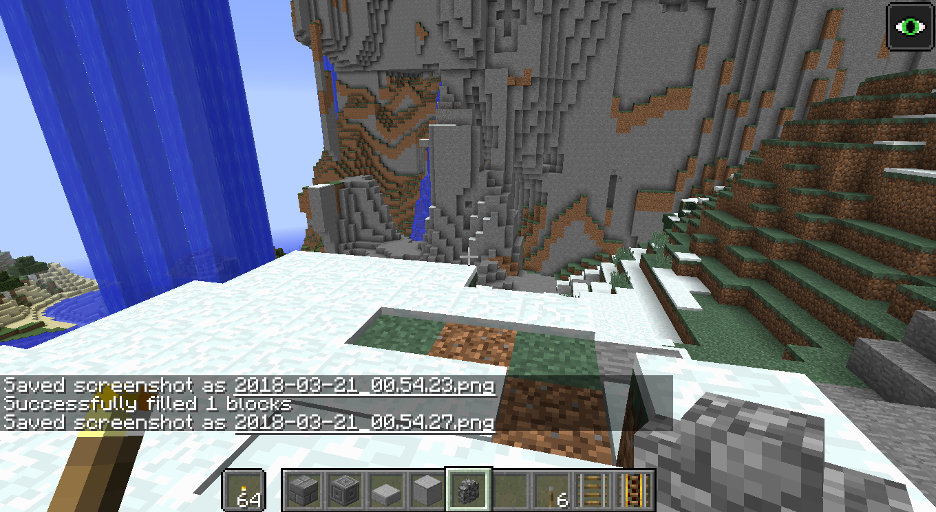 When using the /fill command to place walls, the topmost changing layer doesn't properly place; the block will not exist until a block update happens near it, but still prevents other blocks from being placed in that location.