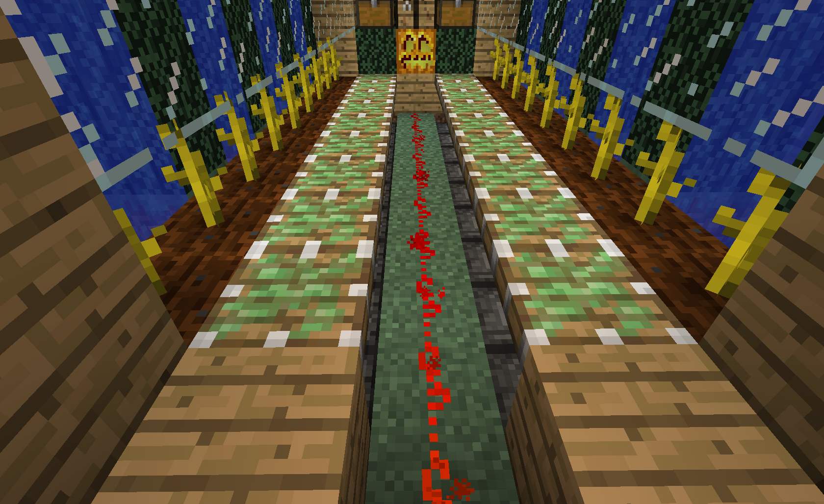 The first 3 files are of the pumpkin farm. The first shows the farm normally and deactivated. The second shows the farm stripped down. The third shows the farm stripped down and activated. The last picture is the untouched interior of my skeleton grinder. This is not the one mentioned in the description, this one is in my current world with the pumpkin farm. I haven't been anywhere near it since 1.4, but when I went to grind today, I walked in and everything was gone. I hadn't hit any buttons, and there were no water leaks. For some reason, the torches that used to be in there were gone as well.