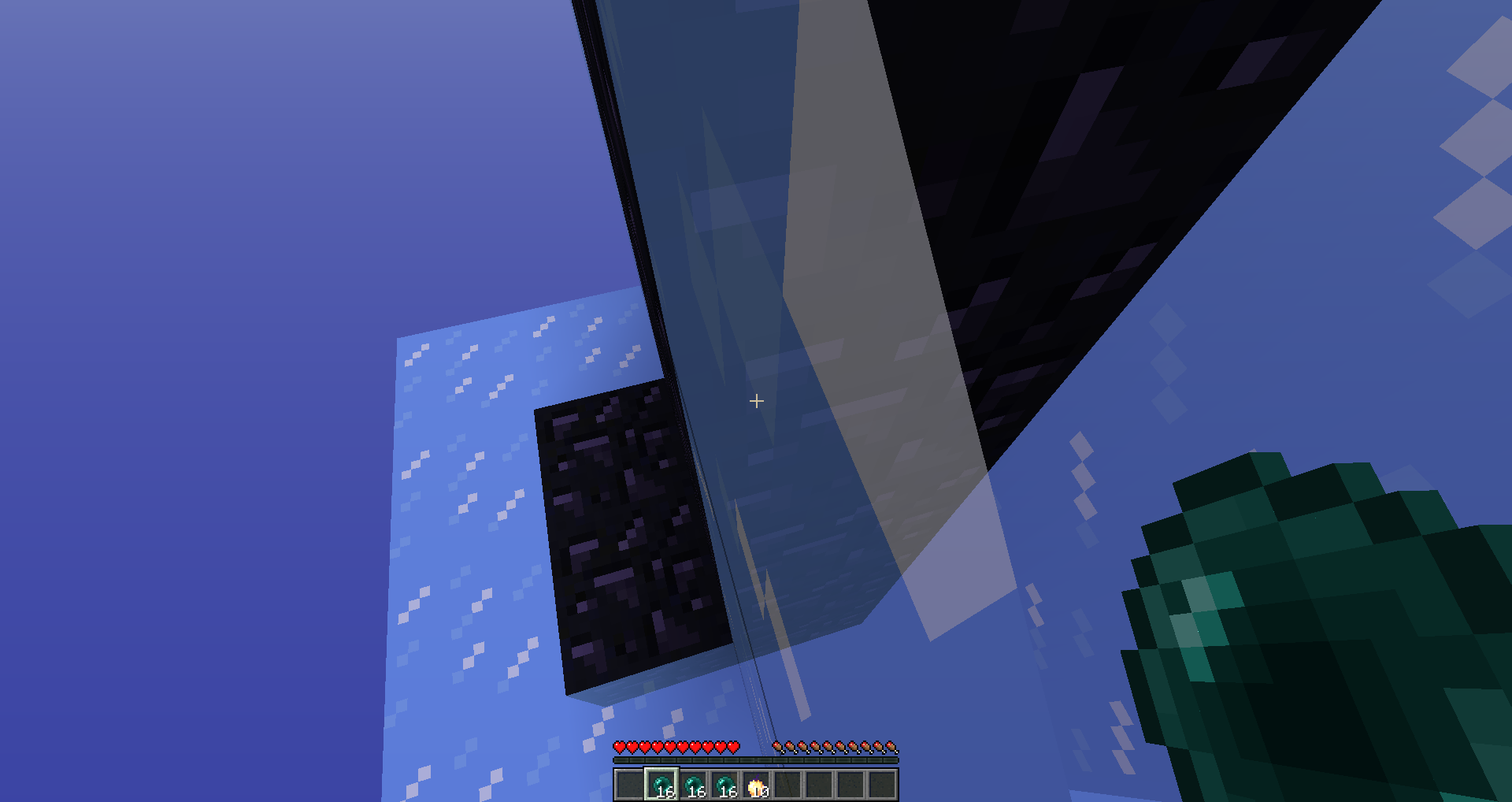 1. Launch the first Ender Pearl on the block of ice/glass so that the player remains suspended in the air