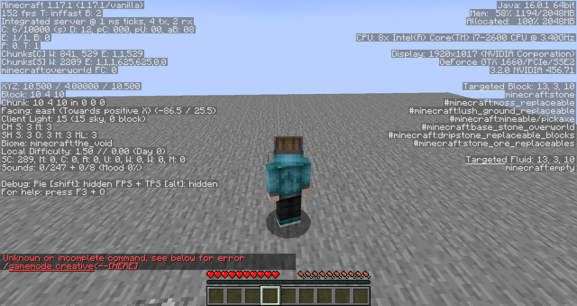 2. Type in "/gamemode creative" (or any other commands that need cheats to work)