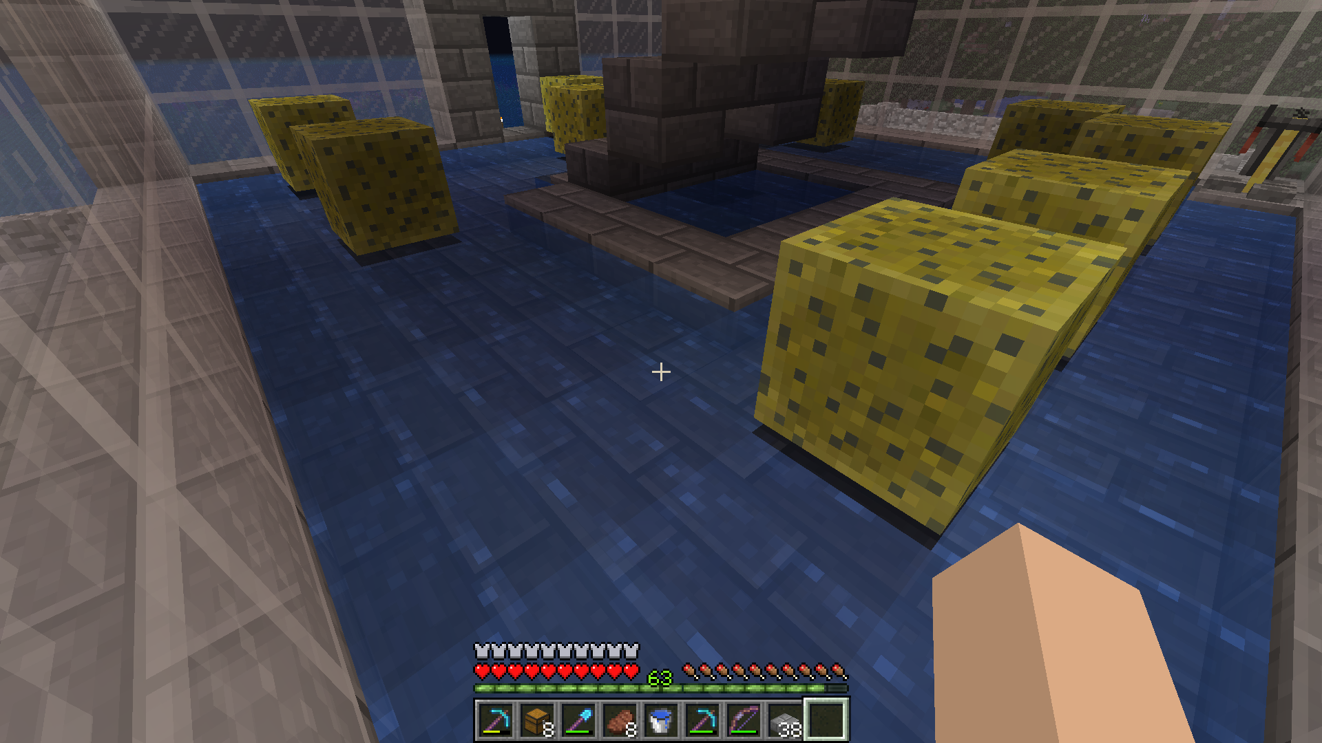 I have an infinite water source under stairs and surrounded blocks then by half slab floor. I broke 1 block to replace it and the water source spread over the whole of the half slab floor. sponges wont absorb water either. Have have had this build since first 1.13 snapshot and have broken blocks around water source without this happening.