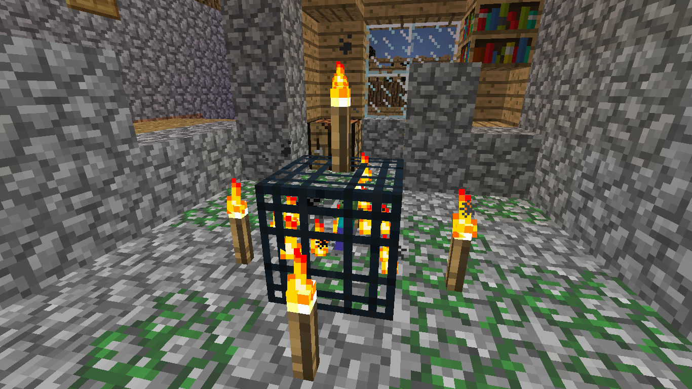 I was exploring a village when I found this dungeon inside a library with no chests but had zombies spawning and terrorizing the villagers.