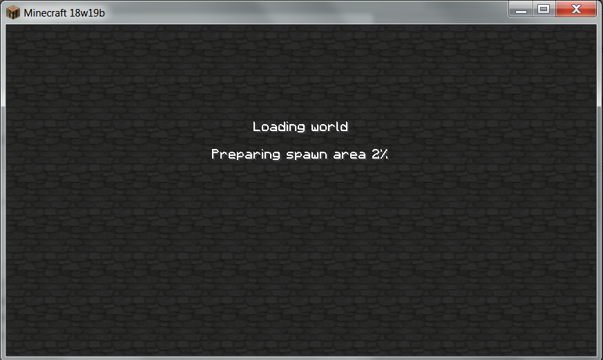 I started the map in question, in 1.12.2, then converted to 18w10a. It has successfully worked through 18w16a. I didn't try it with 18w19a, because I tried a test world first, and that was a MESS. When 18w19b came out just a bit later, I tested it, and it seemed to be working OK. However, it will not load my "Are We There Yet?" map (the one in question). Upon trying to open a copy of it, it hangs and never gets past this screen (See attached MC-18w19b-TryingToStart18w16aMap.png) (that was with a modified Soartex Fanver resource pack in place).