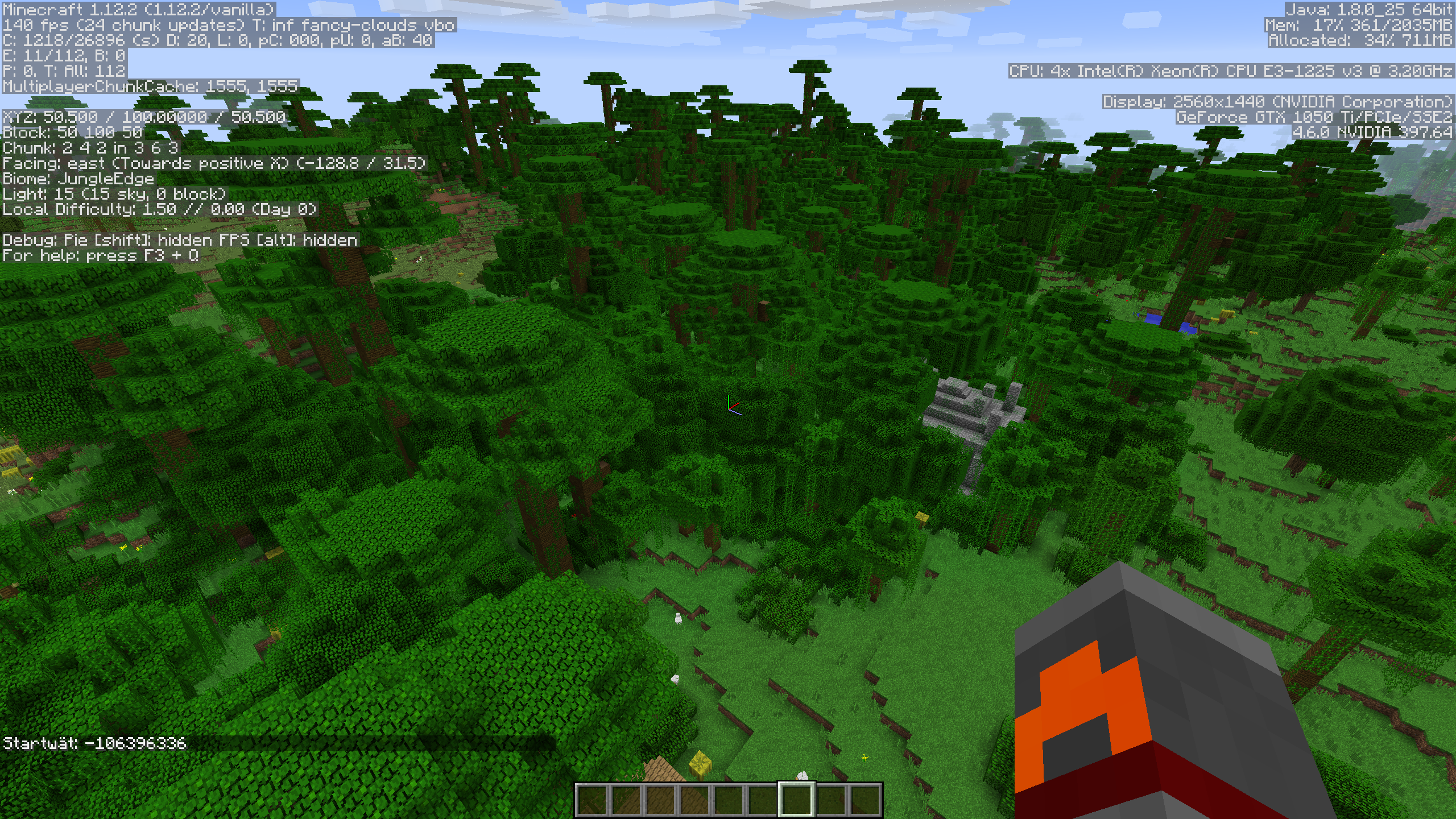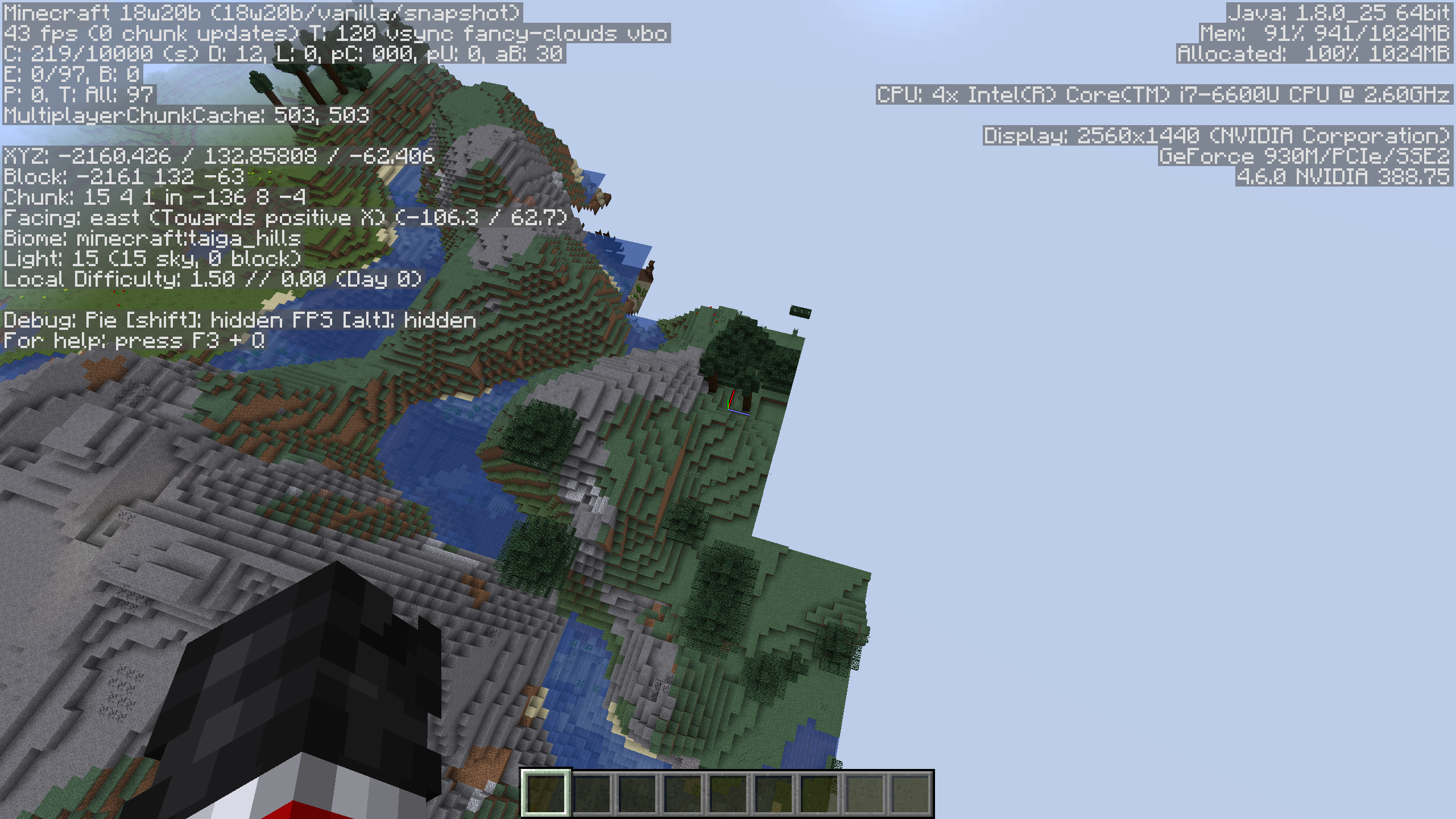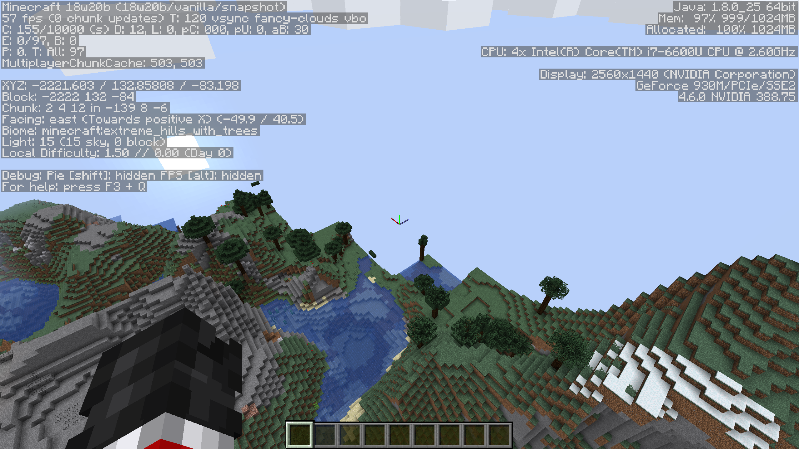 In 18w20b, trees are generating in the ground or not at all. The biome is shown in the screenshot. Affects forest, swamp, roofed forest, taiga, jungle, etc. Either it does not affect extreme hills with trees, or trees randomly decide to generate. But when I am flying by trees that generate there is extreme generation lag. This also appears to affect underwater plants like kelp and sea grass.