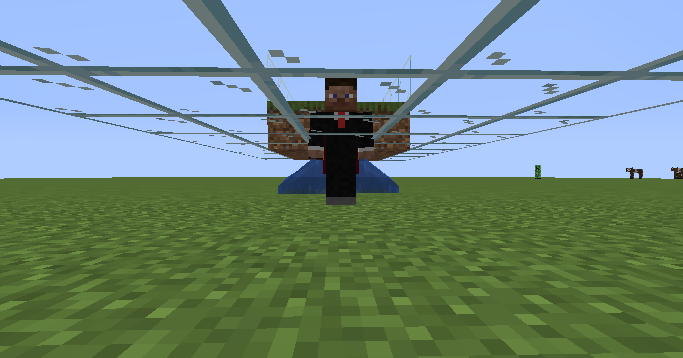When exiting swimming mode in a one-block high dry space, the player will remain in a swimming/crawling state, a hopefully intentional feature. This continues fine provided the block above the player is a solid non-transparent cube. However, if this is not the case, some closely-linked glitchy effects can be noted:
