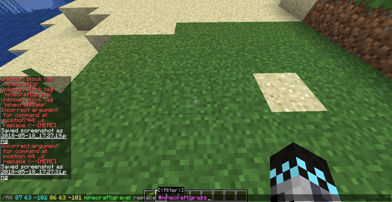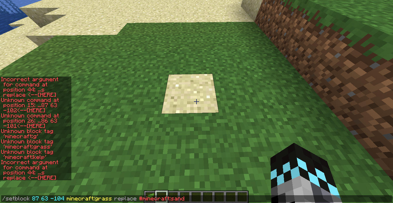 /fill 137 67 -147 137 67 -147 minecraft:sand replace minecraft:grass_block [works]
