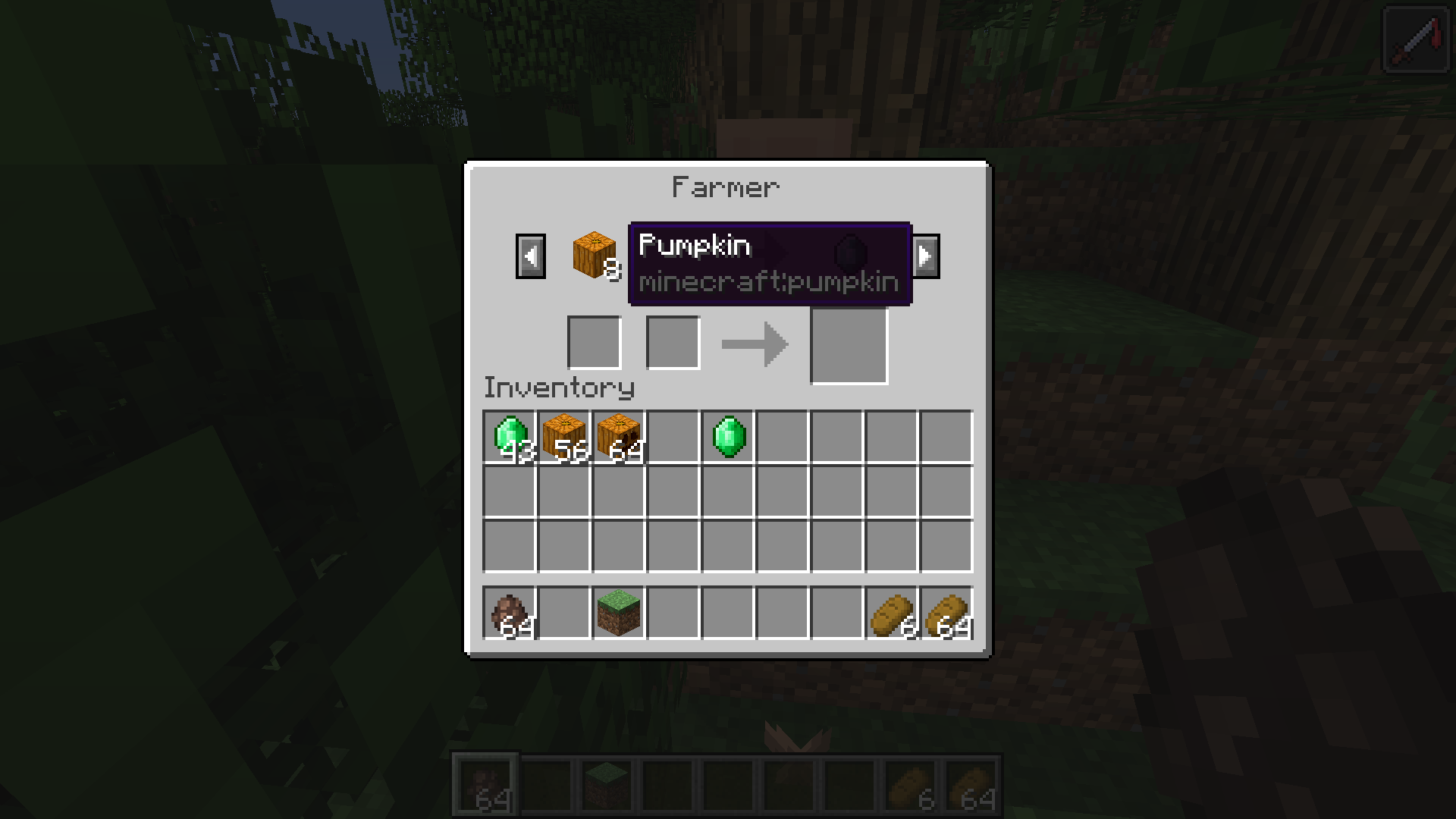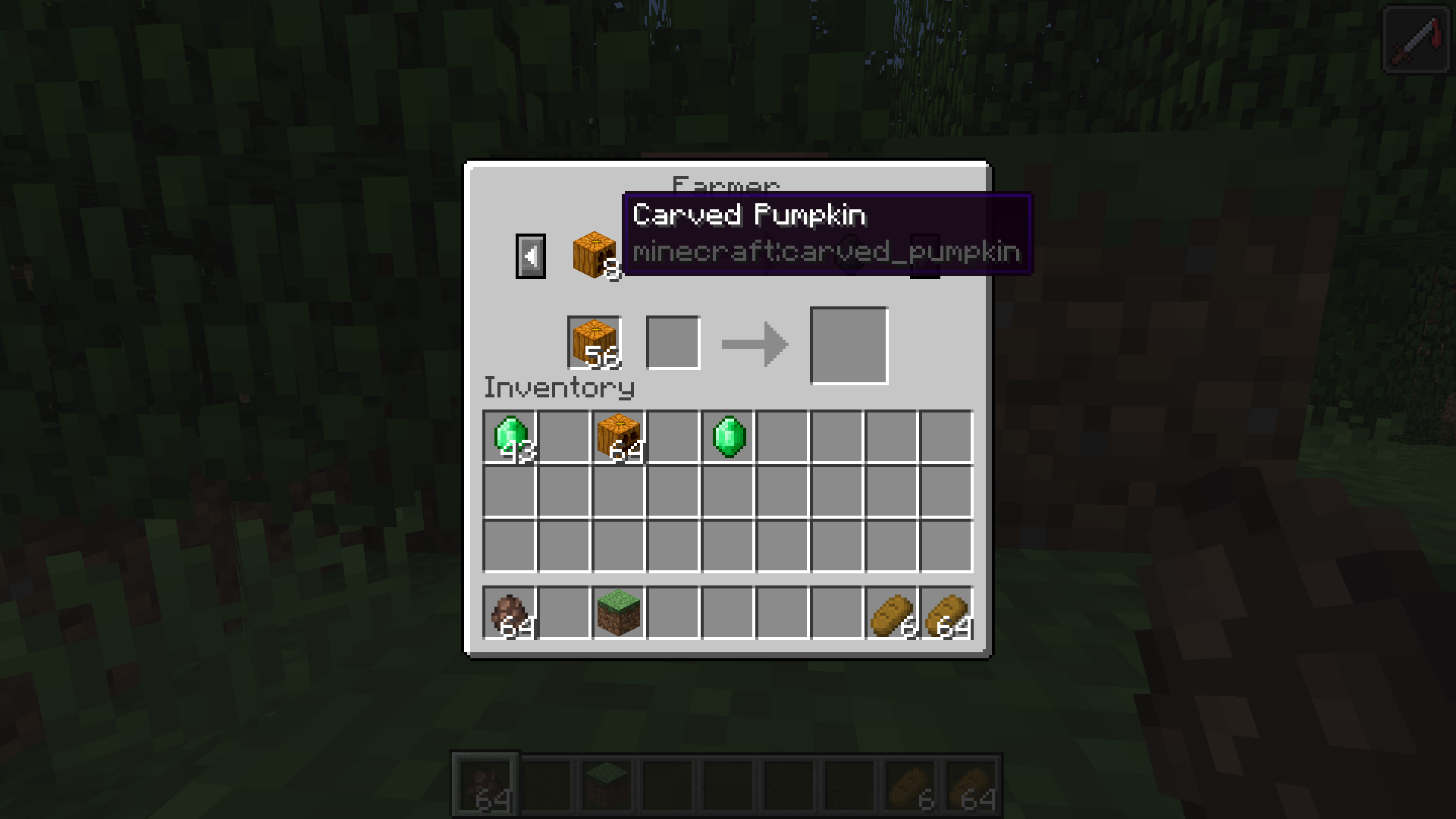 → Note that this new villager will trade normal (uncarved) pumpkins and won't accept the carved ones